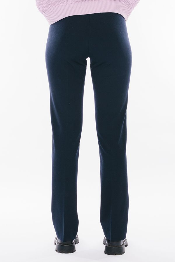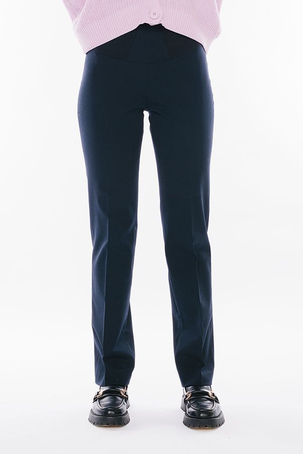 Брюки классические со стрелками, без застежки, на поясе из эластичной ткани. Плотная ткань, подходит для холодного времени года. Детали: на эластичном поясе комбинированная отделка (в поясе резина 4,0 см). Практичная модель для офисных сотрудников. Идеальная посадка на фигуры больших размеров. Длина по внутреннему шву - 84 см. Ширина низа - 21 см. Числовые параметры соответствуют размеру 46. Размер модели на фото: 44. Параметры модели: 86-63-94. Рост модели на фото: 173 см.