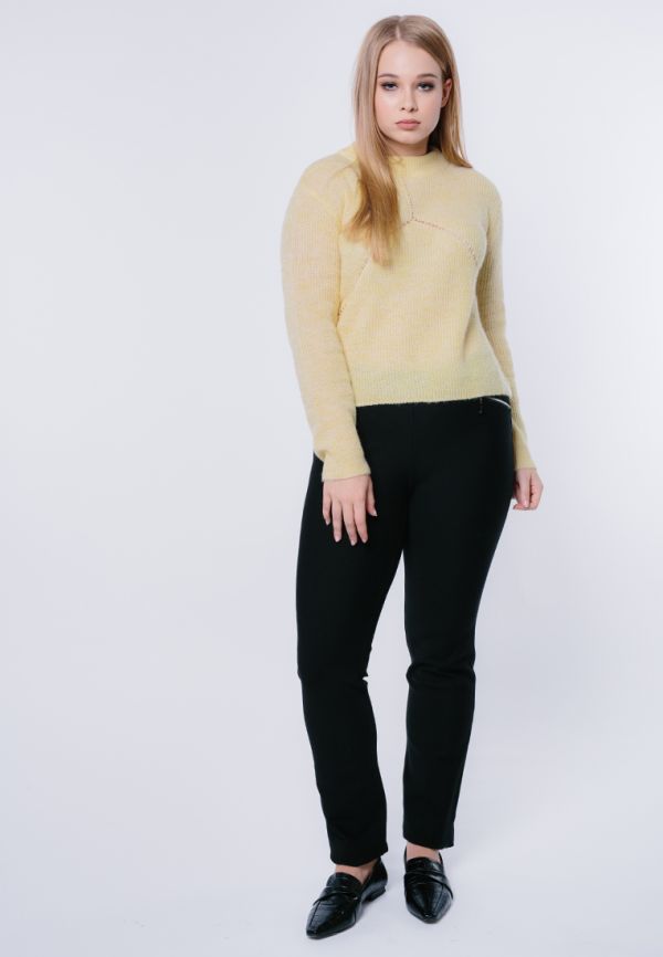Брюки в молодежном стиле из трикотажного полотна. Модель без застежки на трикотажном поясе (в поясе резина 3,0 см), спереди имитация прорезных карманов на молнии, сзади кокетка. Уход за изделием: стирка при t=30. *Числовые параметры соответствуют размеру 44 Длина по внутреннему шву - 85 см. Ширина по линии низа - 16,5 см. Размер модели на фото: 48. Параметры модели: 90-68-102. Рост модели на фото: 175 см.