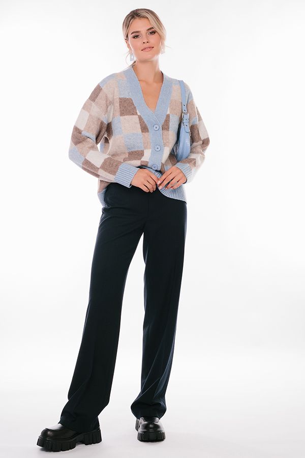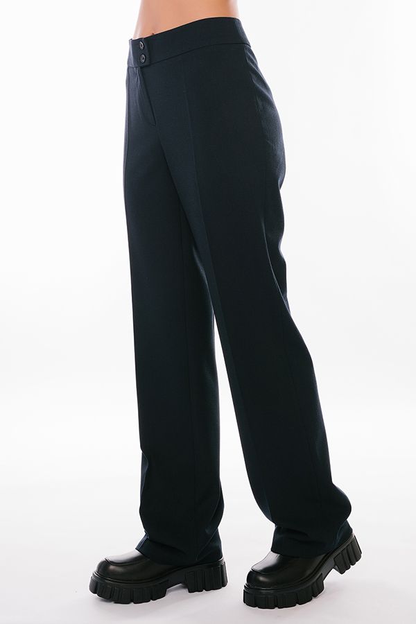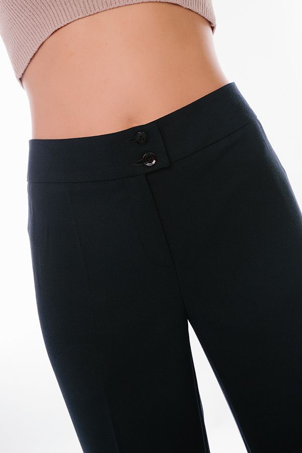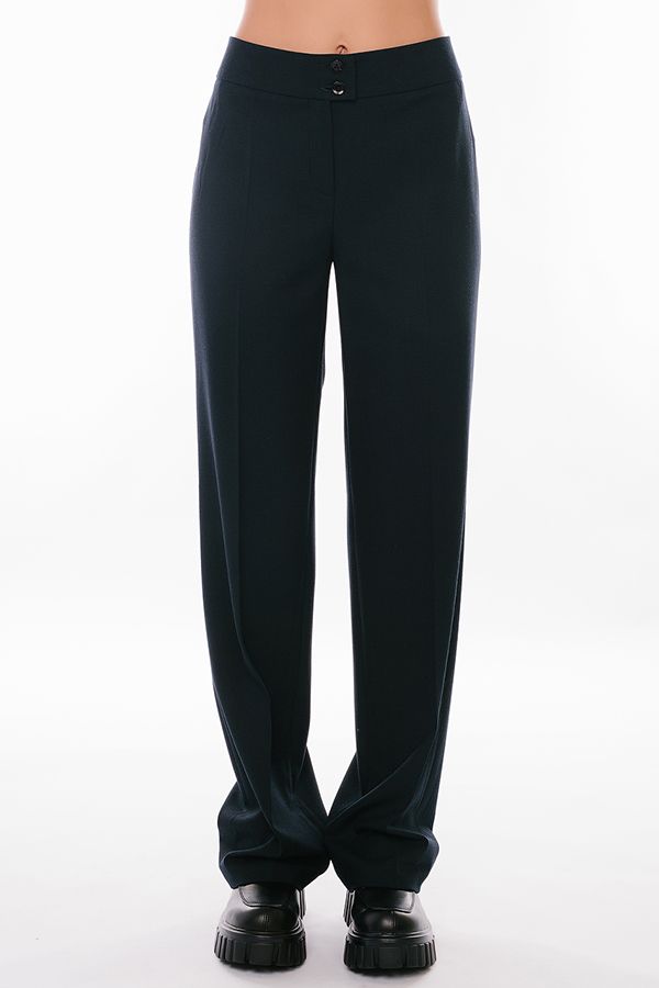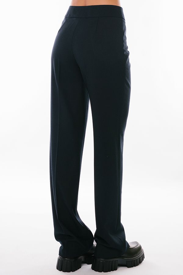 Брюки в классическом стиле со стрелкой, из ткани средней плотности. Силуэт клеш от бедра. Детали: спереди застежка на молнию и две пуговицы, фигурный пояс. Сзади вытачки.Практичная модель для офисных сотрудников. Идеальная посадка на фигуры больших размеров. . Длина по внутреннему шву - 83 см. Ширина низа - 23 см. *Числовые параметры соответствуют размеру 42. Размер модели на фото: 44. Параметры модели: 86-63-94. Рост модели на фото: 173 см.