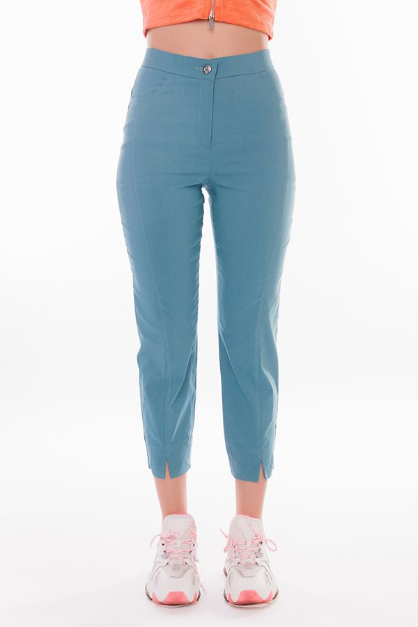 Модель в городском стиле. Детали: спереди вертикальный рельеф, заканчивющийся небольшим V-образным разрезом, застежка на молнии и пуговицу, боковые карманы с горизонтальным входом, в поясе эластичная лента. Сзади двойная кокетка. Длина по внутреннему шву - 63 см. Ширина низа - 17,8 см. *Числовые параметры соответствуют размеру 48. Размер модели на фото: 44. Параметры модели: 86-63-94. Рост модели на фото: 173 см.