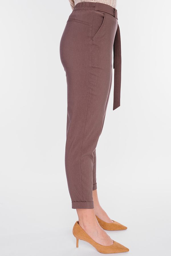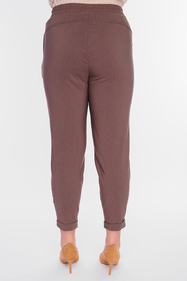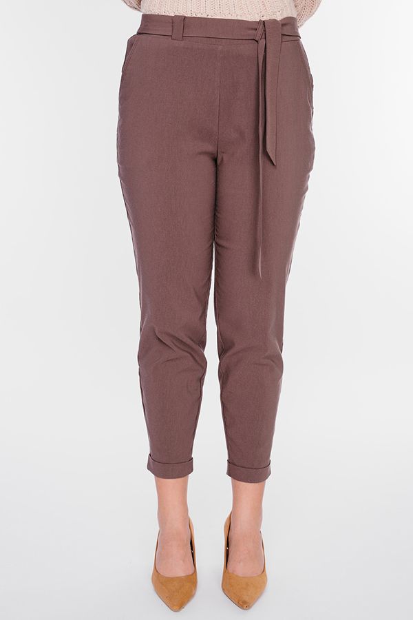 Модель брюк в молодежном стиле. Силуэт: бананы. Детали: спереди боковые карманы, на поясе шлевки, сзади в поясе резина, фигурная кокетка. По передней половинке брюк, в боковые швы вшит тканевый пояс. По линии низа отворот, с помощью которого можно регулировать длину брюк. Длина по внутреннему шву - 67 см. Ширина низа - 14 см. *Числовые параметры соответствуют размеру: 44 РРазмер модели на фото: 46. Параметры модели: 90-68-99. Рост модели на фото: 175 см.