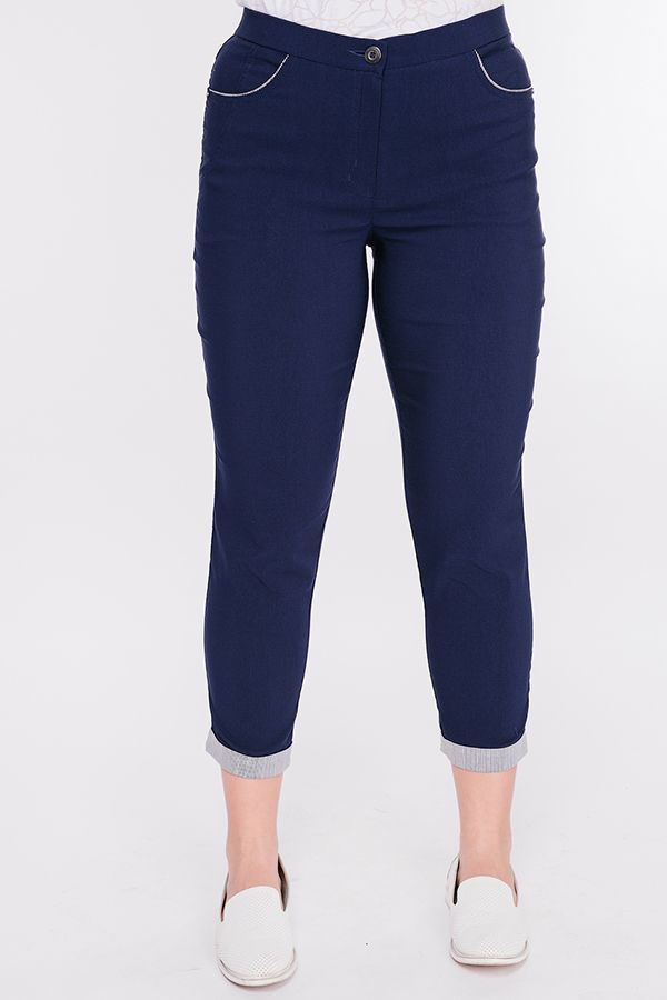 Современная модель брюк в стиле "Casual". Детали: спереди застежка на молнию и пуговицу, боковые карманы с горизонтальным входом и контрастной отделкой, шлевки на поясе. Сзади под кокеткой листочки с имитацией карманов. В поясе резина. По низу брюк функциональный отворот с контрасной отделкой. Длина по внутреннему шву - 69 см. Ширина низа - 14 см. *Числовые параметры соответствуют размеру 44. Размер модели на фото: 48 Параметры модели: 90-68-102 Рост модели на фото: 175 см.