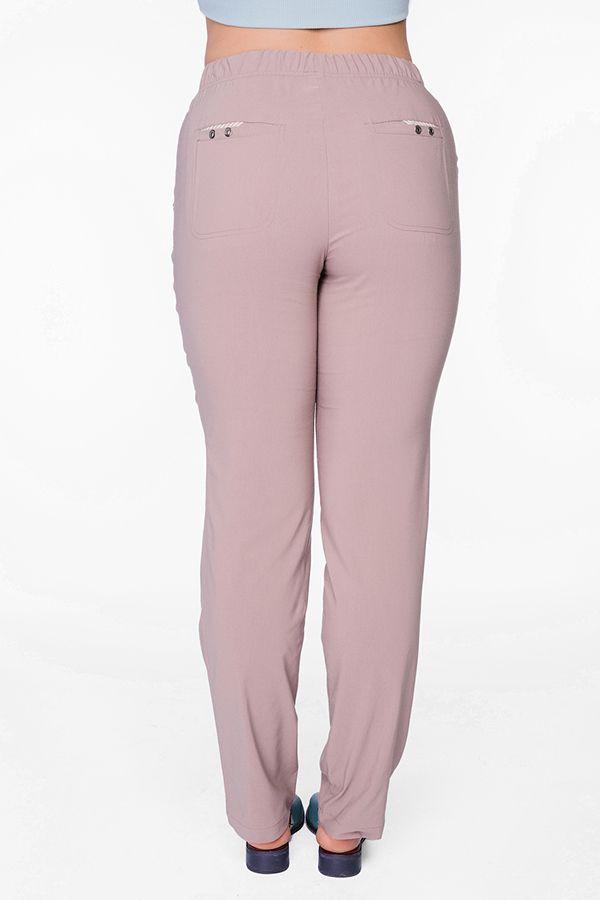 Модель брюк в спортивном стиле без застежки (пояс на резине). Детали: спереди вертикальный рельеф с имитацией боковых карманов и оригинальной отделкой люверсами, сзади полноценные карманы с оригинальной отделкой. Длина по внутреннему шву - 81 см. Ширина низа - 19 см. *Числовые параметры соответствуют размеру 48 Размер модели на фото: 46 Параметры модели: 90-68-99. Рост модели на фото: 175 см.