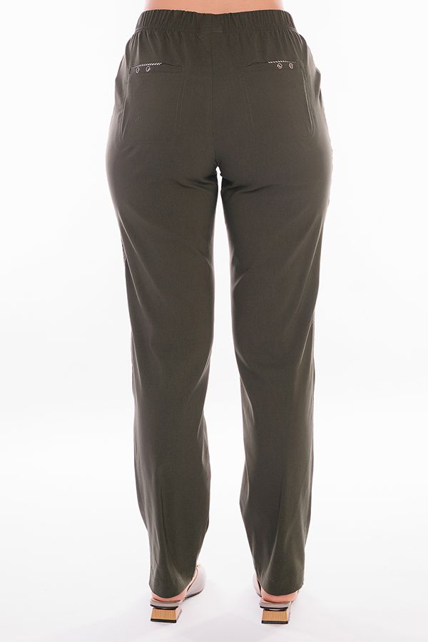 Модель брюк в спортивном стиле без застежки (пояс на резине). Детали: спереди вертикальный рельеф с имитацией боковых карманов и оригинальной отделкой люверсами, сзади полноценные карманы с оригинальной отделкой. Длина по внутреннему шву - 81 см. Ширина низа - 19 см. *Числовые параметры соответствуют размеру 48. Размер модели на фото: 48 Параметры модели: 86-64-100. Рост модели на фото: 174 см.