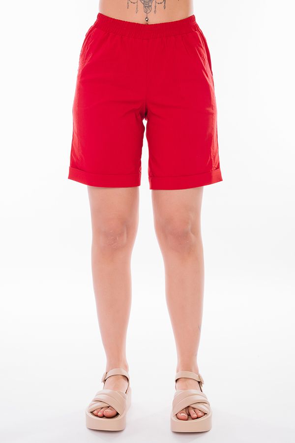 Модель шорт в спортивном стиле без застежки (пояс на резине). Детали: спереди вертикальный рельеф, боковые карманы (отделка - двойная строчка), сзади фигурная кокетка. По низу манжеты. Длина по внутреннему шву - 22 см. Ширина низа - 27 см. *Числовые параметры соответствуют размеру 48. Размер модели на фото: 46. Параметры модели: 86-64-100. Рост модели на фото: 174 см.