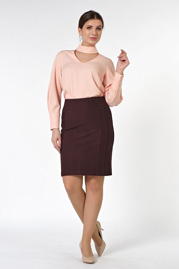 Юбка выполнена из трикотажного полотна, с рельефными отстрочками по передней и задней половинке. Сзади потайной замок в среднем шве. Данный фасон подходит для разных типов фигуры. В составе ткани высокое содержание вискозы, что обеспечивает изделию комфортность и мягкость. Длина изделия: 57 см. Размер модели на фото: 52. Параметры модели: 105-82-116. Рост модели на фото: 175 см.