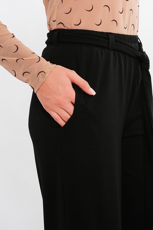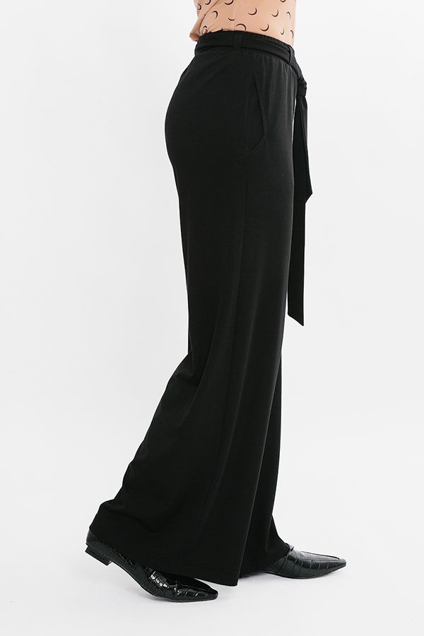 Комфортная модель брюк из тонкого трикотажа. Детали: Спереди фигурные боковые карманы. В поясе плотная резина на сборке, шлевки на поясе. Тканевые пояс. Длина по внутреннему шву - 81 см. Ширина низа -35 см. Числовые параметры соответствуют размеру 44. Размер модели на фото: 44. Параметры модели: 86-63-94. Рост модели на фото: 173 см.