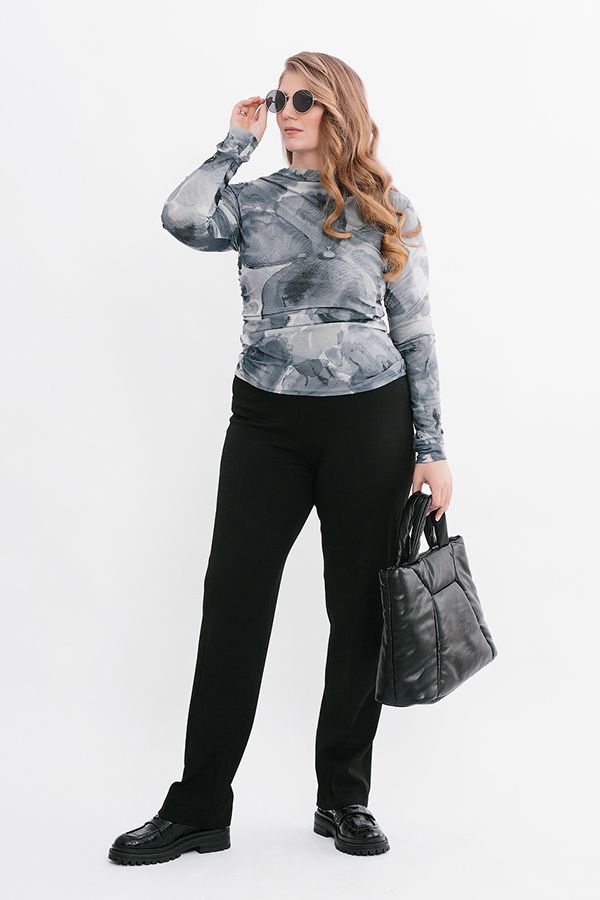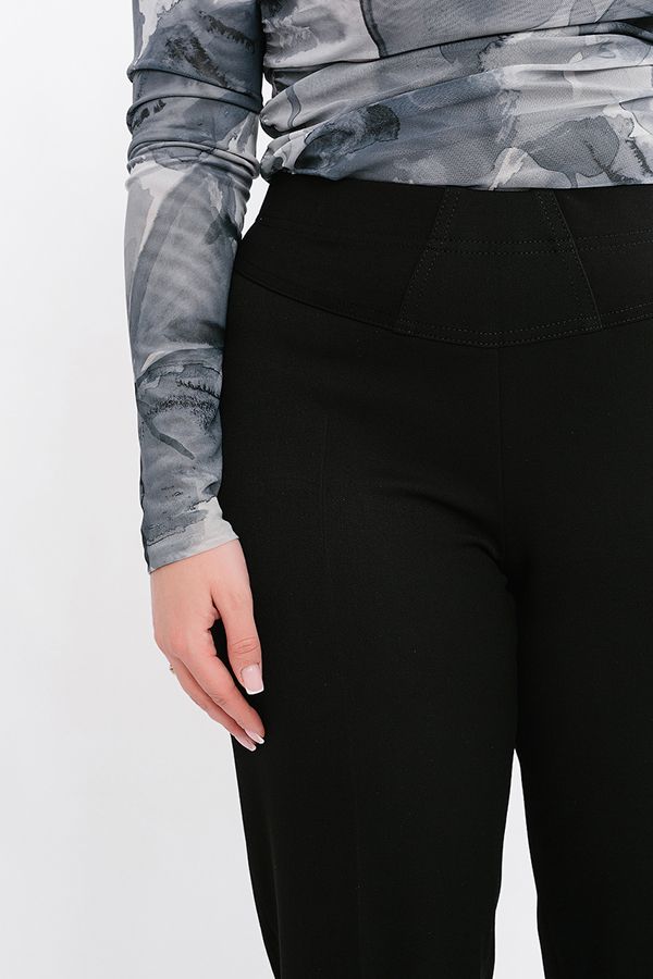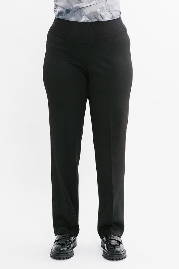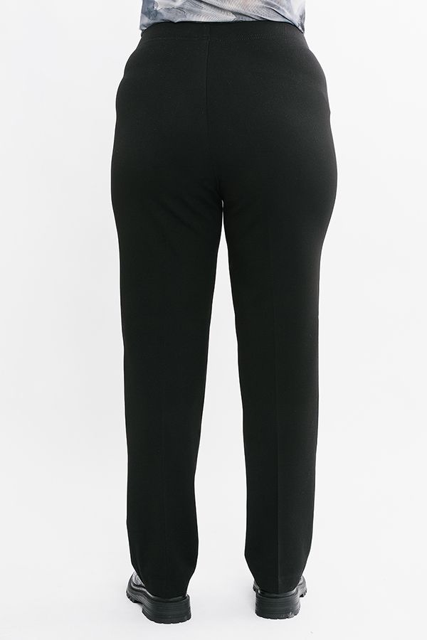 Брюки классические со стрелками, без застежки на поясе из эластичной ткани. Плотная ткань, подходит для холодного времени года. Детали: на эластичном поясе комбинированная отделка (в поясе резина 4,0 см). Практичная модель для офисных сотрудников. Идеальная посадка на фигуры больших размеров. Длина по внутреннему шву - 84 см. Ширина низа - 21 см. *Числовые параметры соответствуют размеру 46. Размер модели на фото: 52. Параметры модели: 100-82-113. Рост модели на фото: 170 см.