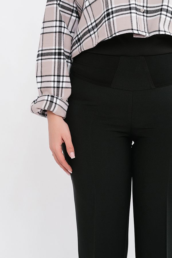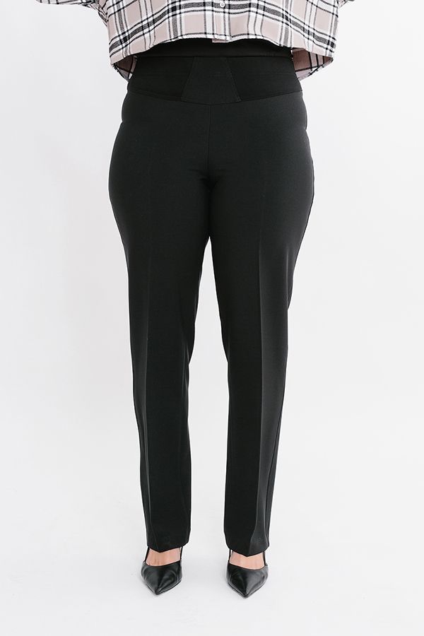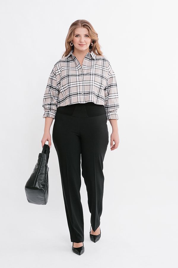 Брюки классические со стрелками, без застежки на поясе из эластичной ткани. Детали: на эластичном поясе комбинированная отделка (в поясе резина 4,0 см) Практичная модель для офисных сотрудников. Идеально подходит для фигур больших размеров. Длина по внутреннему шву - 86 см. Ширина низа - 20,5 см. *Числовые параметры соответствуют размеру 46. Размер модели на фото: 52. Параметры модели: 100-82-113. Рост модели на фото: 170 см.