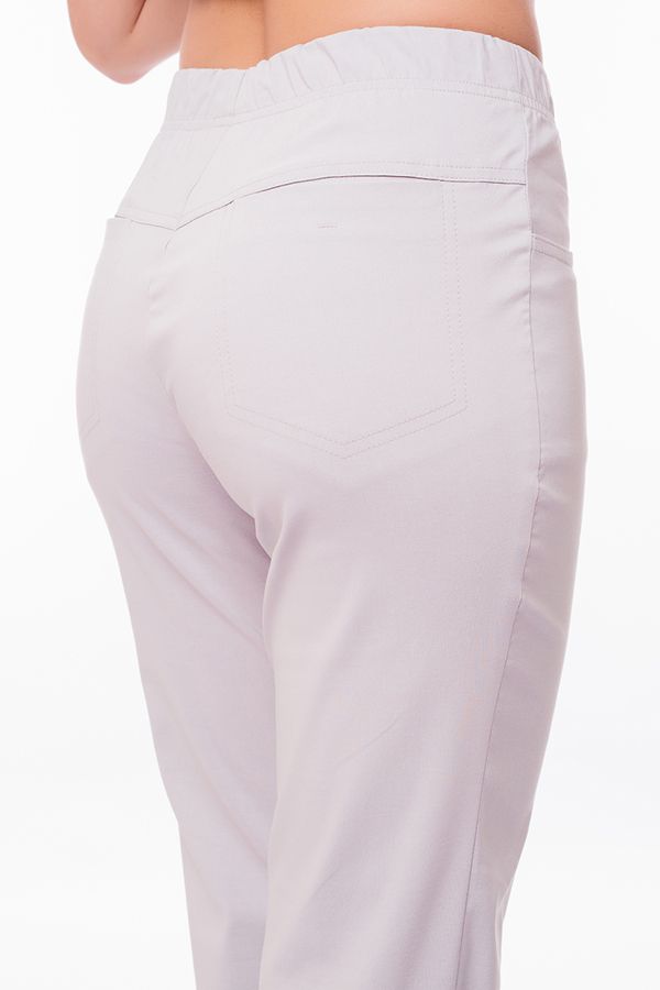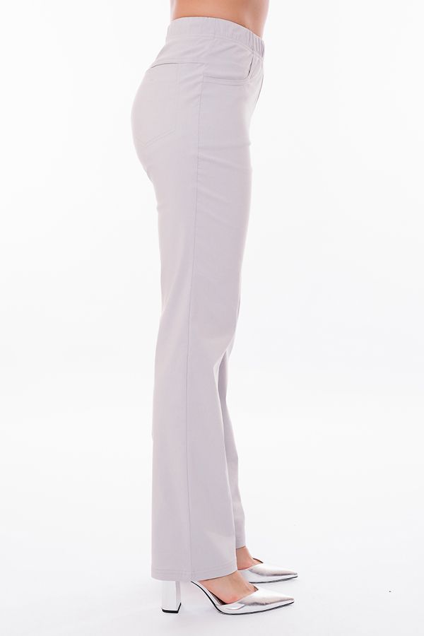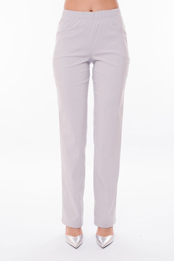Модель летних брюк из бенгалина в классическом стиле без застежки. Детали: спереди карманы с горизонтальным входом, имитация гульфика, сзади под кокеткой внутренние карманы. В поясе резина. *Числовые параметры соответствуют размеру 44. Длина по внутреннему шву: 84 см. Ширина по линии низа: 20 см. Размер модели на фото: 44.  Параметры модели: 86-63-94. Рост модели на фото: 173 см.
