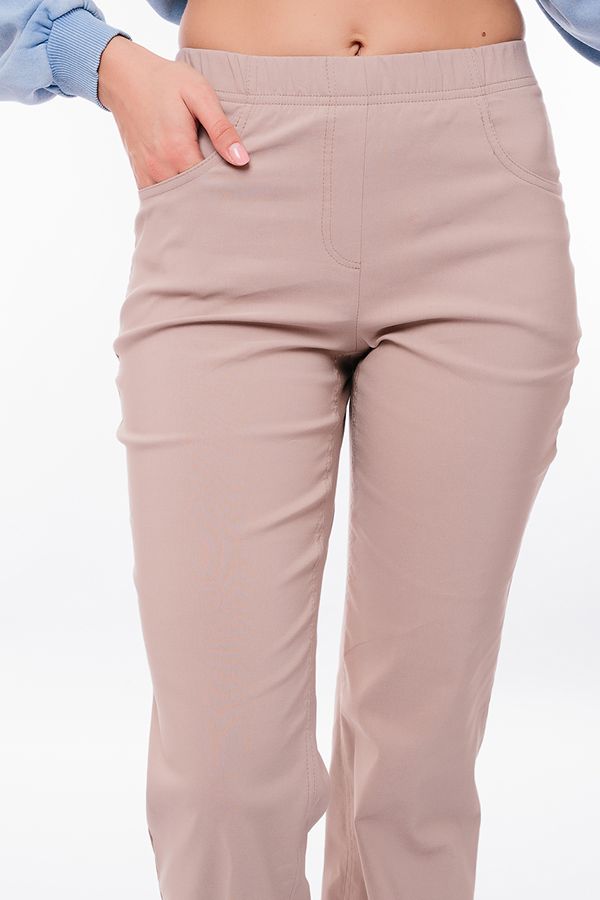 Модель летних брюк из бенгалина в классическом стиле без застежки. Детали: спереди карманы с горизонтальным входом, имитация гульфика, сзади под кокеткой внутренние карманы. В поясе резина. *Числовые параметры соответствуют размеру 44. Длина по внутреннему шву: 84 см. Ширина по линии низа: 20 см. Размер модели на фото: 44. Параметры модели: 86-63-94. Рост модели на фото: 173 см.