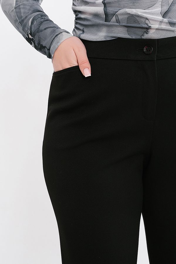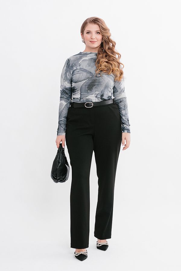 Классические брюки из плотной ткани. Детали: спереди застежка на молнию и пуговицу, боковые карманы, на поясе шлевки, в поясе по бокам резина. По задней половинке брюк вертикальные резы. Практичная модель брюк для офисных сотрудников. Длина по внутреннему шву- 83 см. Ширина низа-21,5 см. Числовые параметры соответствуют размеру 52. Размер модели на фото 52. Параметры модели: 100-82-113. Рост модели на фото : 170 см.
