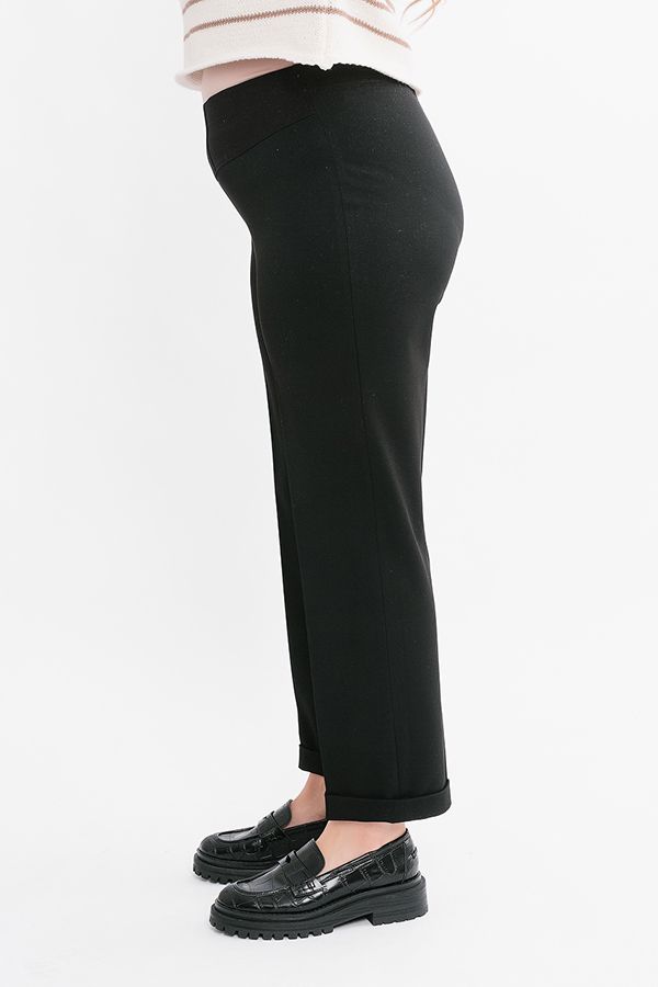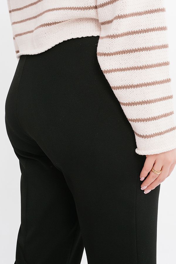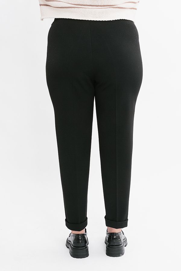 Брюки в городском стиле. Модель без застежки на поясе из эластичной ткани. По линии низа отворот, который можно использовать для изменения длины брюк. Длина брюк по внутреннему шву- 70 см. Ширина низа- 19 см. * Числовые параметры соответствуют размеру 46. Размер модели на фото: 52 Параметры модели: 100-82-113 Рост модели на фото: 170 см.