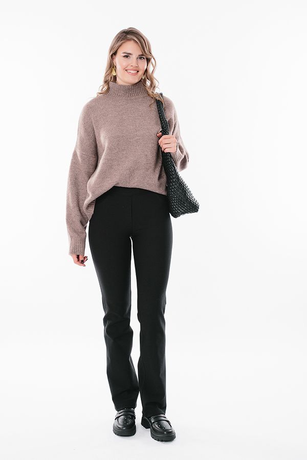 Брюки в молодежном стиле из плотного трикотажного полотна на флисе. Силует: прямой от колена. Детали: модель без застежки, спереди имитация гульфика, имитация боковых карманов, сзади кокетка. Практичная модель для офисных сотрудников. Идеальная посадка на фигуры больших размеров. Уход за изделием: стирка при t=30. Длина по внутреннему шву - 84 см. Ширина низа - 19,5 см. *Числовые параметры соответствуют размеру 44 Размер модели на фото: 44. Параметры модели: 86-63-94. Рост модели на фото: 173 см.