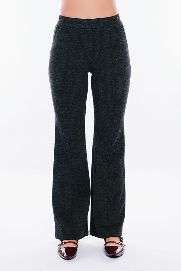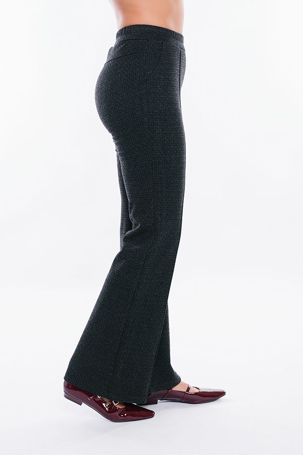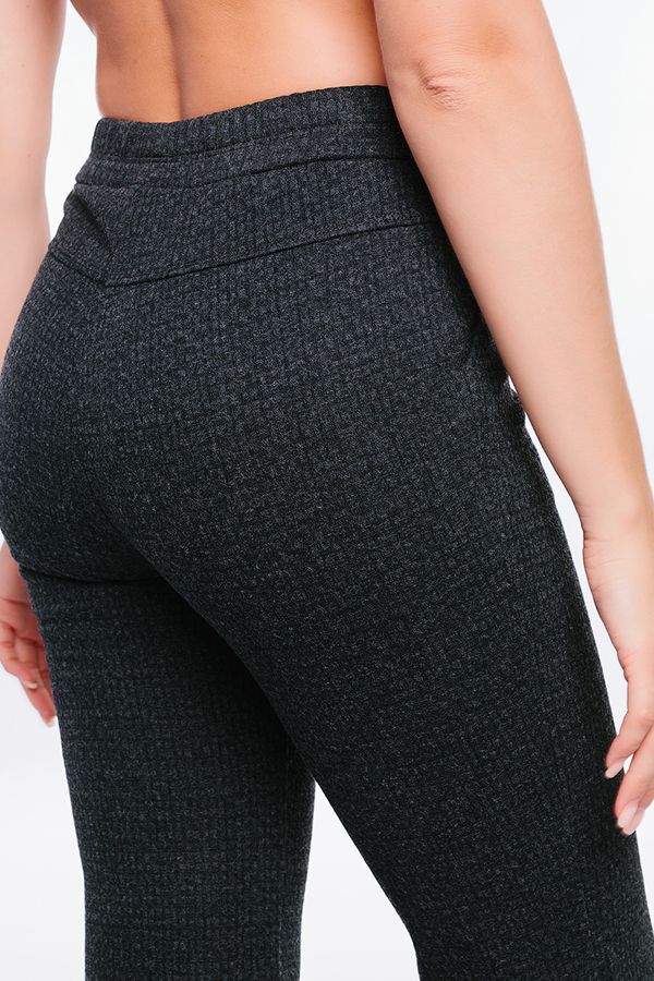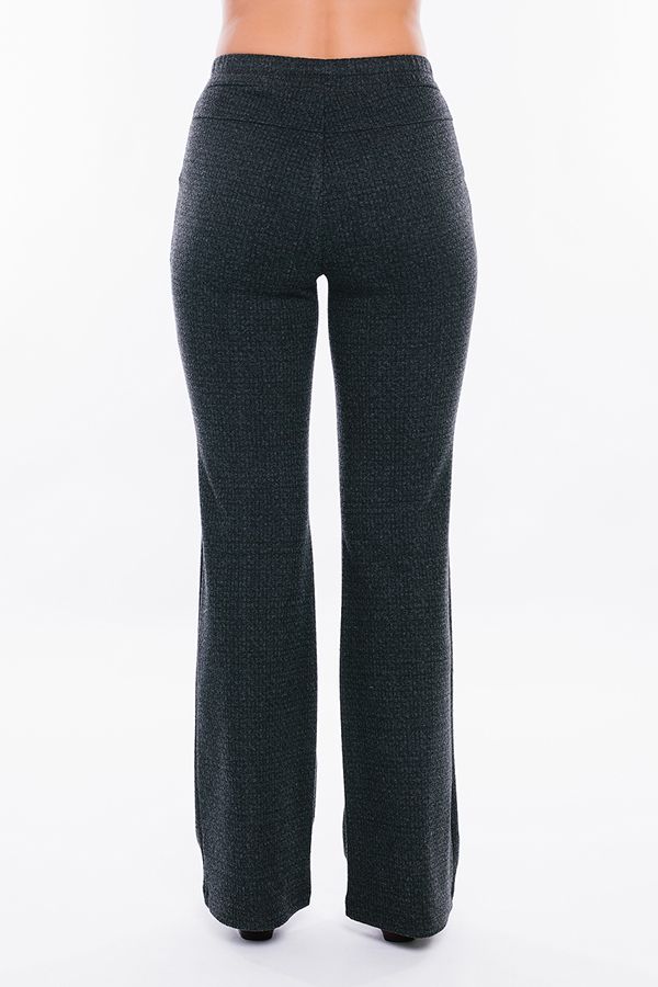 Комфортная модель брюк без застежки из трикотажной ткани с содержанием шерсти. Детали: спереди по передней половинке застроченные стрелки, имитация гульфика, по бокам карманы , сзади кокетка. В пояс вставлена эластичная лента. Длина по внутреннему шву - 82,5 см. Ширина низа - 27 см. Числовые параметры соответствуют размеру 46. Размер модели на фото: 44. Параметры модели: 86-63-94. Рост модели на фото: 173 см. см.