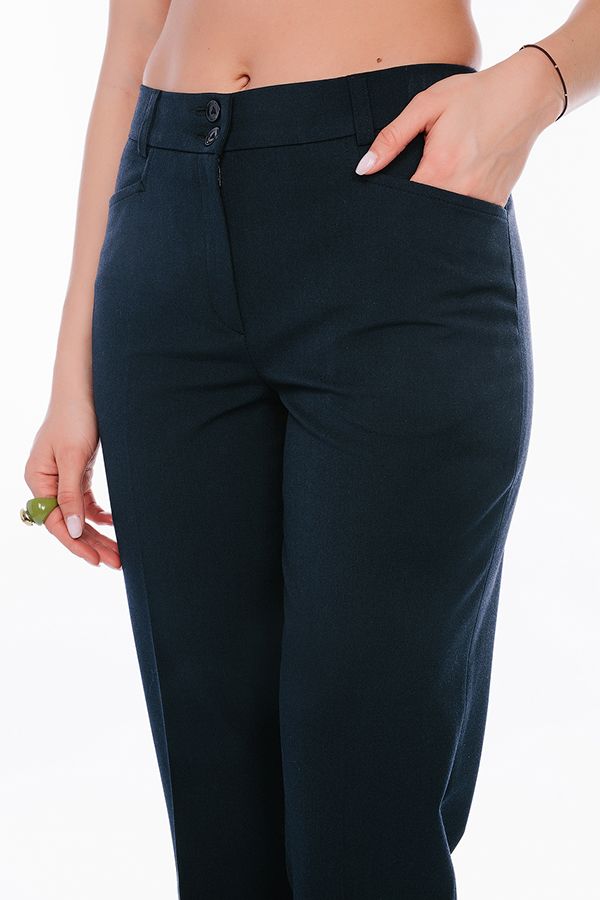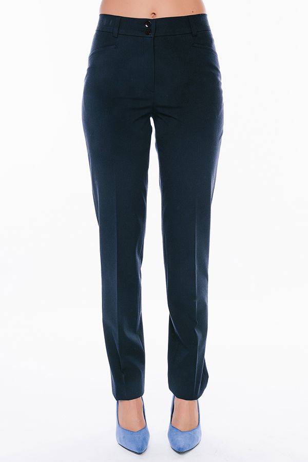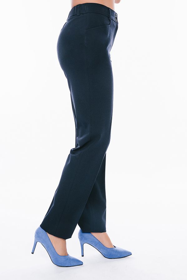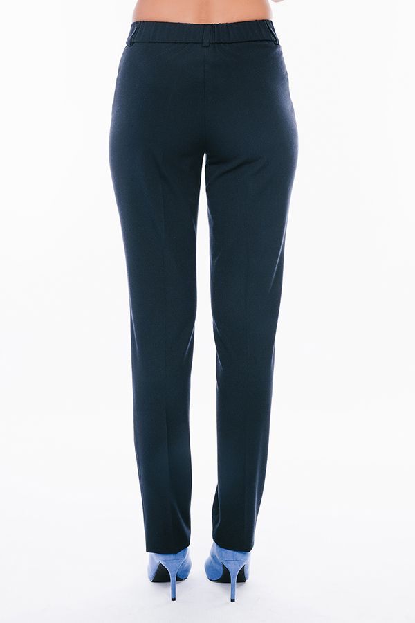 Брюки в классическом стиле со стрелками. Силуэт зауженный. Детали: спереди застежка на молнию и две пуговицы, боковые карманы с горизонтальным входом, по спинке, в поясе резина на сборке, шлевки на поясе. Идеальная посадка на фигуры больших размеров. Длина по внутреннему шву - 82 см. Ширина низа - 17 см. Числовые параметры соответствуют размеру 44. Размер модели на фото: 44. Параметры модели: 86-63-94. Рост модели на фото: 173 см.