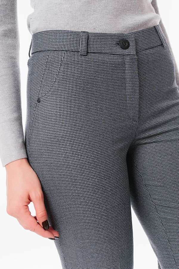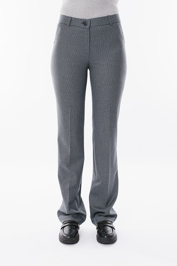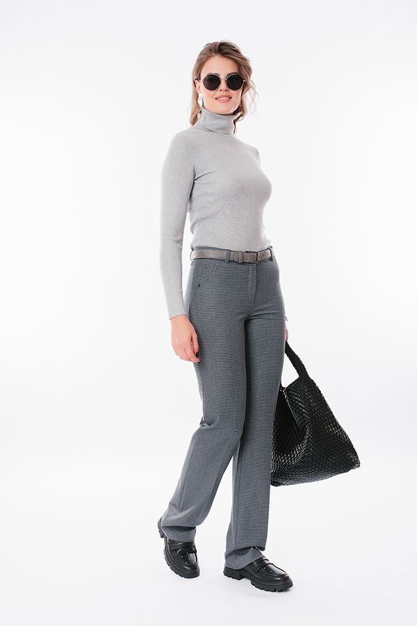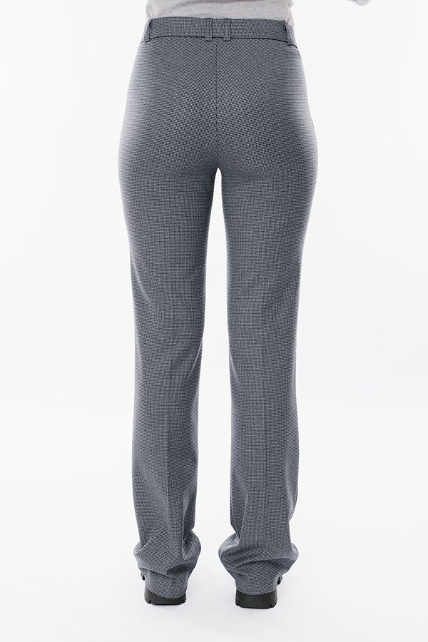 Брюки в классическом стиле со стрелками из ткани в гусиню лапку. Силуэт прямой. Детали: спереди застежка на молнию и пуговицу, имитация боковых карманов, в поясе резина, на поясе шлевки Модель брюк подходит женщинам всех возрастов. Длина по внутреннему шву - 84 см. Ширина низа - 22 см.Числовые параметры соответствуют размеру 46 Размер модели на фото: 44. Параметры модели: 86-63-94. Рост модели на фото: 173 см.