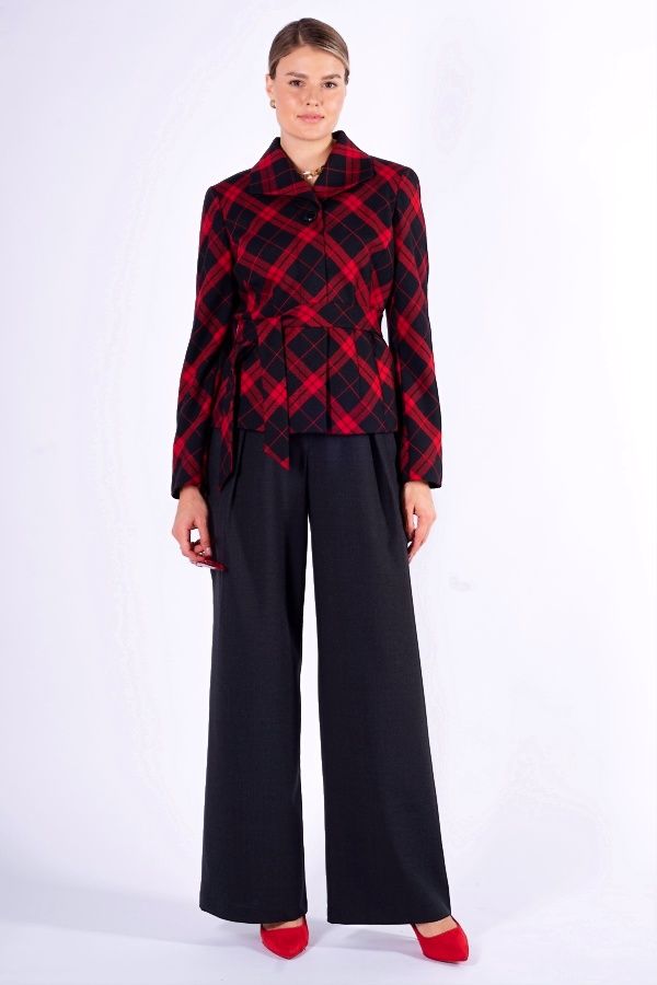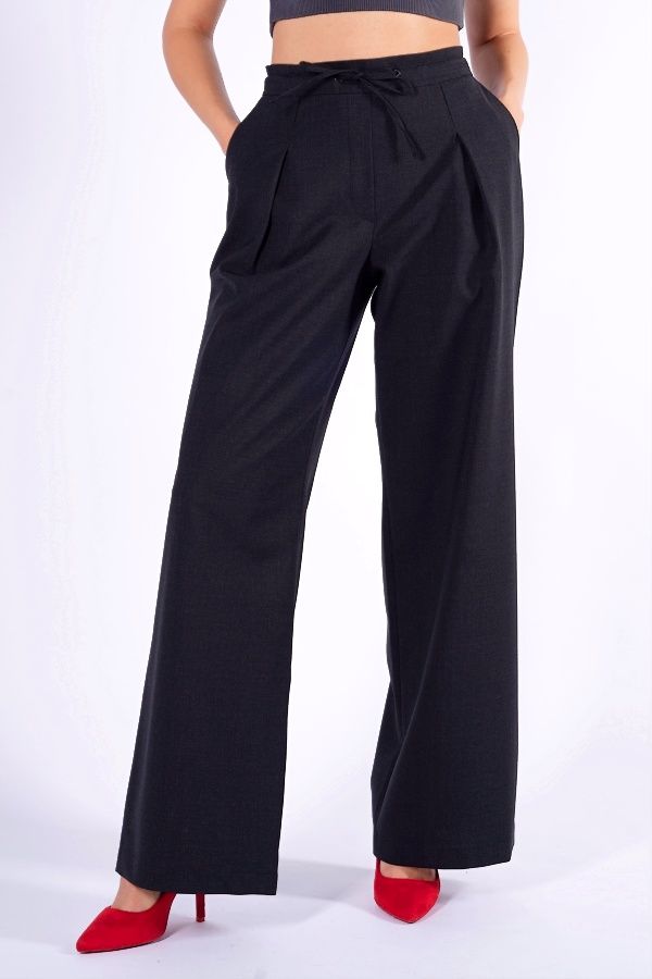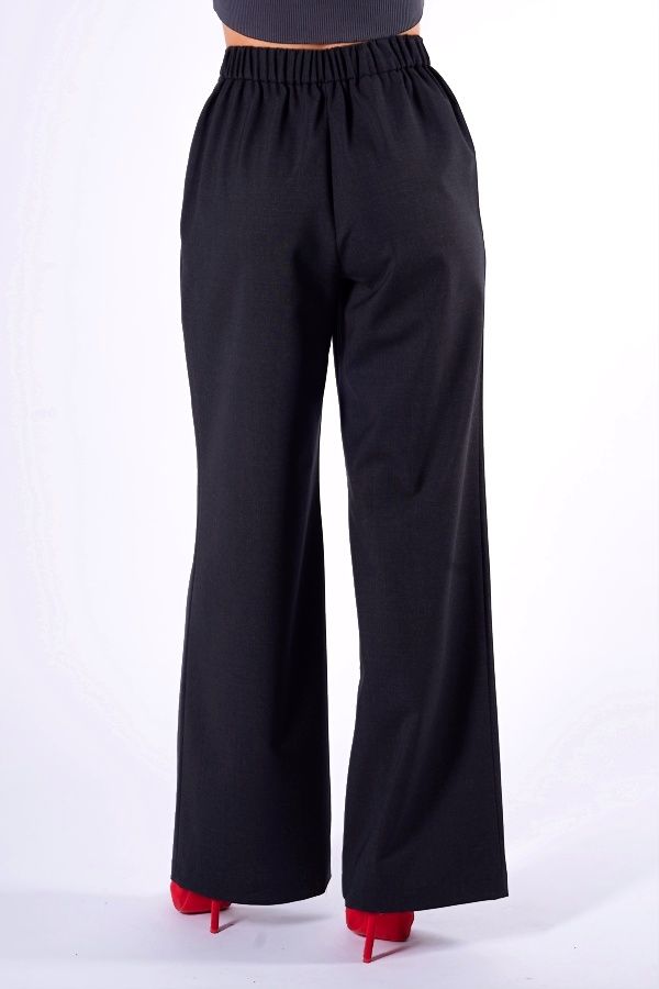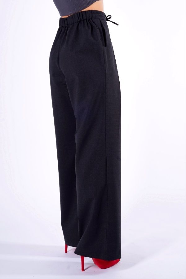 Брюки из ткани с большим содержанием шерсти, силуэта "клеш от бедра". Спереди имитация гульфика, застроченные вытачки, в поясе кулиска. Оригинальные вертикальные карманы. По спинке , в поясе резина. Длина по внутреннему шву - 84 см. Ширина по линии низа: 28. *Числовые параметры соответствуют размеру 40. Размер модели на фото: 44. Параметры модели: 86-63-94 Рост модели на фото: 173 см.