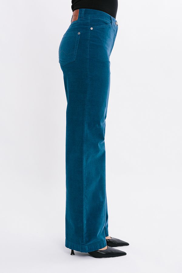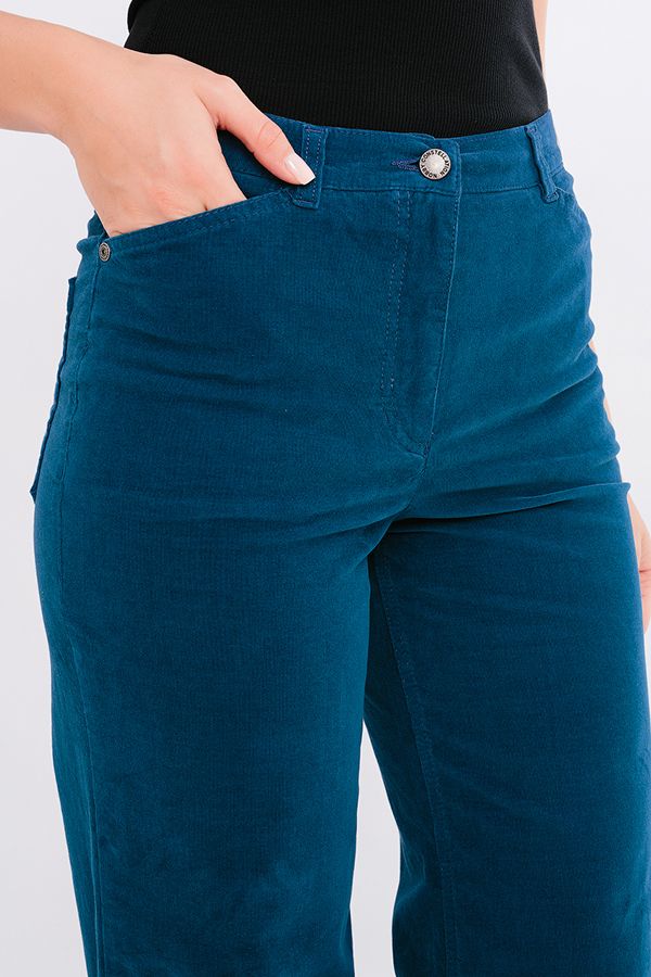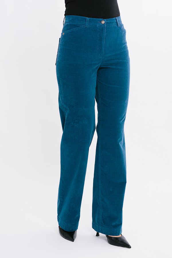 Прямые джинсы из микровельвета. Детали: спереди застежка на болт и молнию, оригинальные боковые карманы с хольнитенами, сзади под кокеткой накладные карманы с фигурной строчкой, на поясе шлевки. Длина по внутреннему шву - 84 см. Ширина по линии низа - 25,5 см. *Числовые параметры соответствуют размеру 44. Размер модели на фото: 44. Параметры модели: 86-63-94. Рост модели на фото: 173 см.