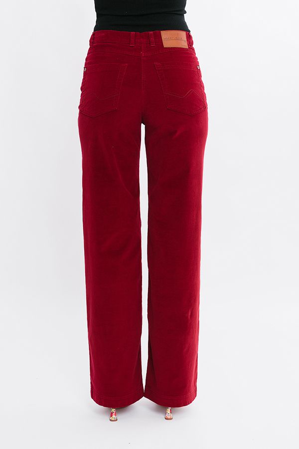 Прямые джинсы из микровельвета. Детали: спереди застежка на болт и молнию, оригинальные боковые карманы с хольнитенами, сзади под кокеткой накладные карманы с фигурной строчкой, на поясе шлевки. Длина по внутреннему шву - 84 см. Ширина по линии низа -  25,5 см. *Числовые параметры соответствуют размеру 44. Размер модели на фото: 44. Параметры модели: 86-63-94. Рост модели на фото: 173 см.