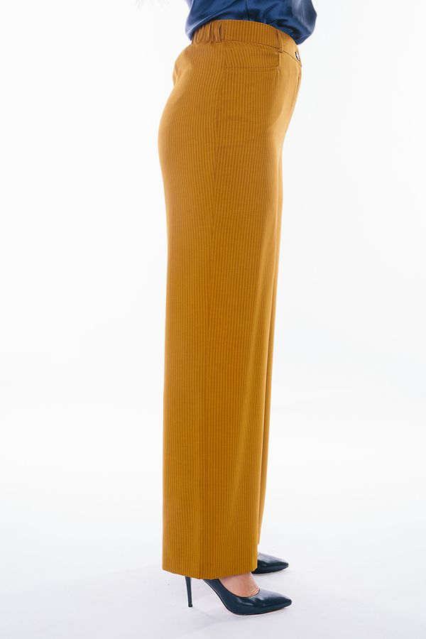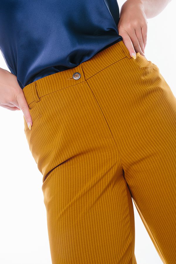 Элегантные легкие летние брюки,  в полной длине. Детали: спереди застежка на молнию и пуговицу, оригинальные карманы с горизонтальным входом,  по спинке в поясе резина на сборке , на поясе шлевки. Длина по внутреннему шву - 81 см. Ширина по линии низа: 26 см. *Числовые параметры соответствуют размеру 42. Размер модели на фото: 48. Параметры модели: 94-68-102 Рост модели на фото: 175 см.