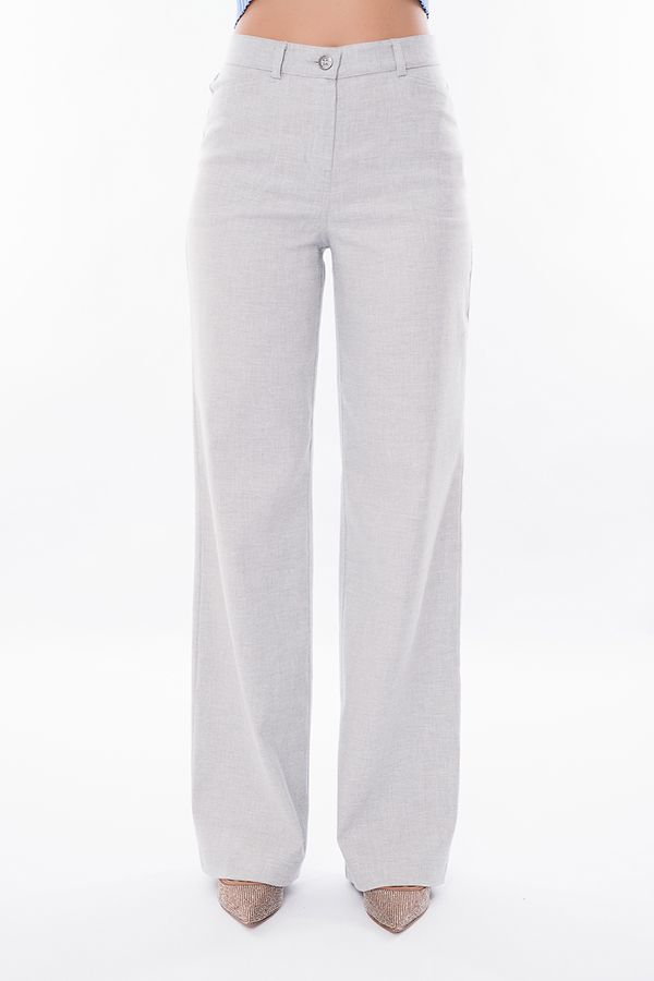 Брюки прямого силуэта из легкой ткани  с содержанием льна. Спереди застежка на молнию и пуговицу, боковые карманы , сзади под кокеткой накладные карманы. Длина брюк по внутреннему шву- 87 см. Ширина низа- 26см. Числовые параметры соответствуют размеру 42. Размер модели на фото: 44. Параметры модели: 86-63-94. Рост модели на фото: 173 см.