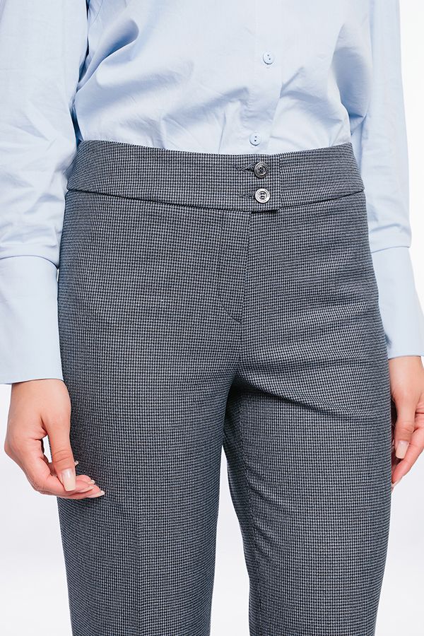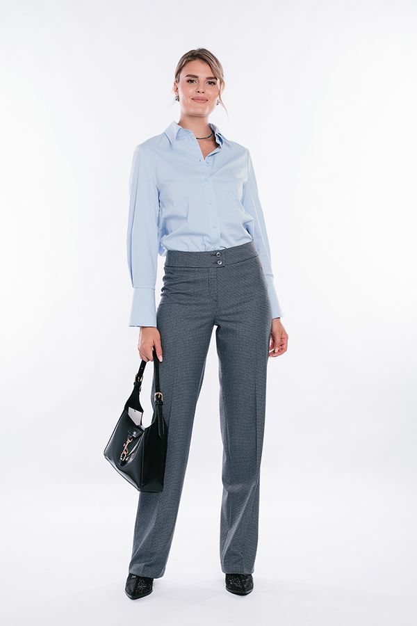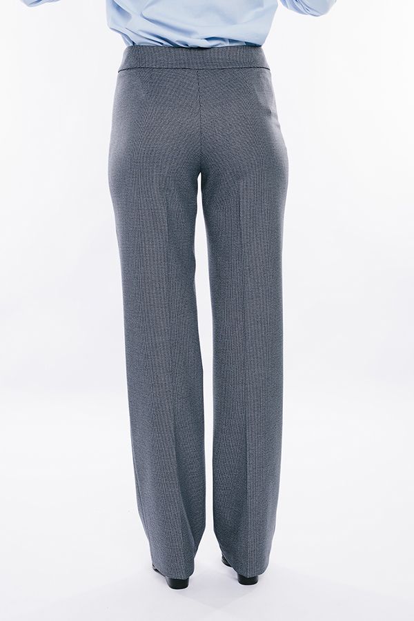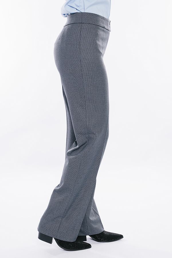 Брюки в классическом стиле со стрелкой. Силуэт клеш от бедра. Детали: спереди застежка на молнию и две пуговицы. Сзади вытачки. Практичная модель для офисных сотрудников. Идеальная посадка на фигуры больших размеров. Длина по внутреннему шву - 86 см. Ширина низа - 23 см. Числовые параметры соответствуют размеру 44. Размер модели на фото: 44. Параметры модели: 86-63-94. Рост модели на фото: 173 см.