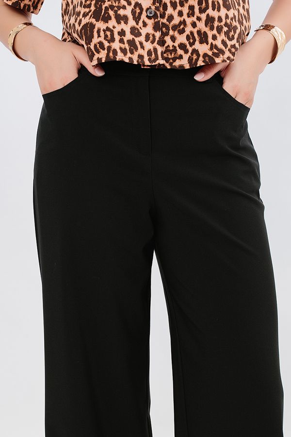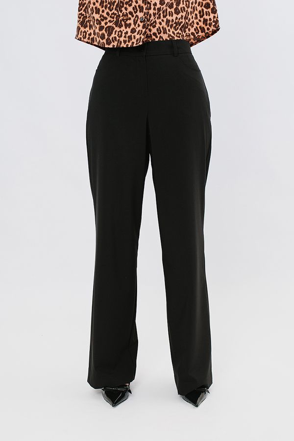Брюки-трубы из легкой костюмной ткани в полной длине! Детали: застежка на молнию и пуговицу, по бокам полноценные карманы, сзади под кокеткой листочки. На поясе шлевки, по спинке в поясе резина на сборке. Длина по внутреннему шву - 83 см. Ширина низа - 28 см. *Числовые параметры соответствуют размеру 44. Размер модели на фото: 46. Параметры модели: 94-65-100. Рост модели на фото: 175 см.