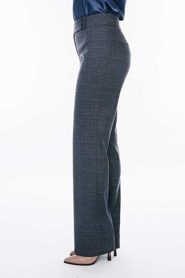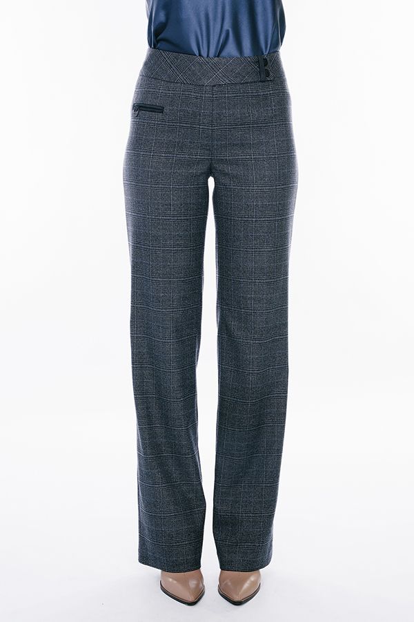 Брюки в классическом стиле с оригинальным поясом. Силуэт прямой от бедра. Детали: спереди по правой половинке брюк маленький карман-обманка в рамке, застежка на молнию и две пуговицы. Сзади вытачки. Фигурный пояс с удлиненной патой, бархотной шлевкой. Практичная модель для офисных сотрудников. Идеальная посадка на фигуры больших размеров. Длина по внутреннему шву - 86 см. Ширина низа - 23 см. Числовые параметры соответствуют размеру 42. Размер модели на фото: 44. Параметры модели: 86-63-94. Рост модели на фото: 173 см.