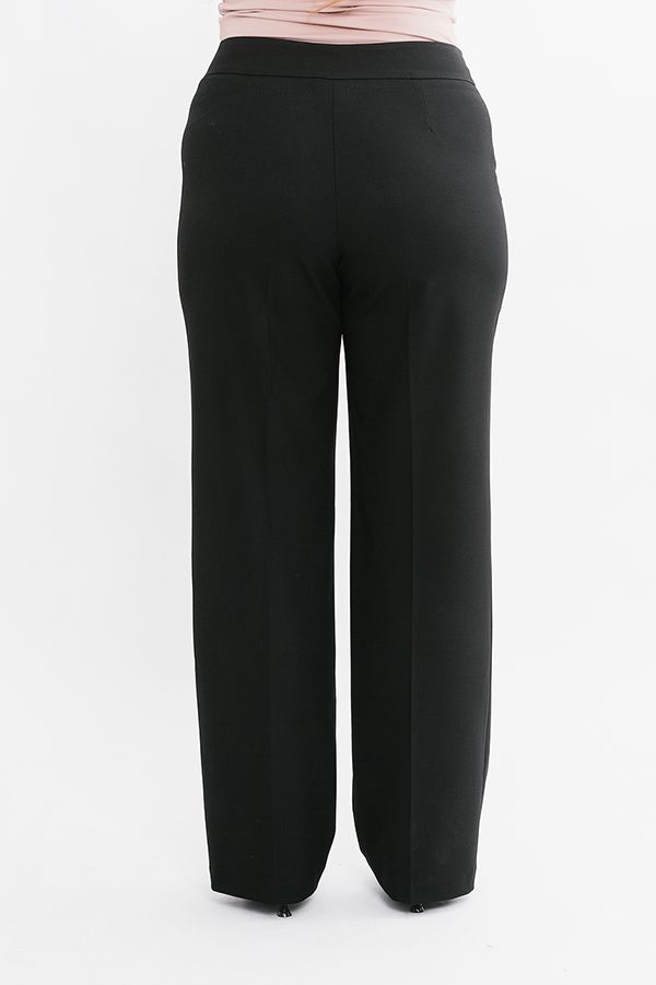 Брюки в классическом стиле со стрелкой . Силуэт: клеш от бедра. Детали: спереди застежка на молнию и две пуговицы. Практичная модель для офисных сотрудников. Идеальная посадка на фигуры больших размеров. Идеально подходит на полные ножки. Уход за изделием: стирка при t=30. *Числовые параметры соответствуют размеру 44. Длина по внутреннему шву 86 см. Ширина по линии низа: 23,5 см. Размер модели на фото: 52 Параметры модели: 100-82-113. Рост модели на фото: 170 см.