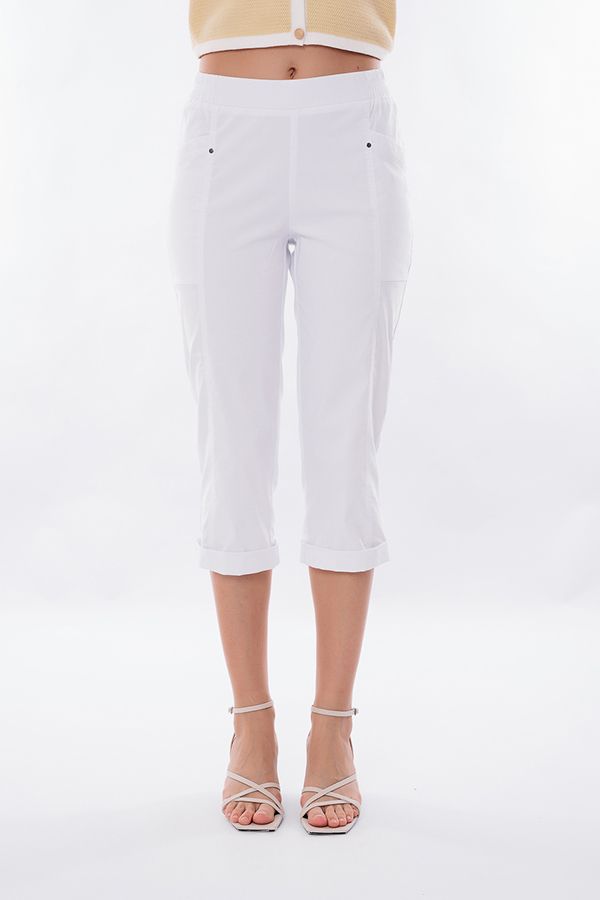 Капри в спортивном стиле без застежки. Спереди вертикальный рельеф с полноценными боковыми карманами и оригинальной отделкой хольнитенами. В поясе резина, которая надежно фиксирует брюки на фигуре. Сзади кокетка. По линии низа регулируемый отворот. Уход за изделием: стирка при t=30. *Числовые параметры соответствуют размеру 48 Длина по внутреннему шву - 51 см. Ширина по линии низа - 21,5 см. Размер модели на фото: 48. Размер модели на фото: 44. Параметры модели: 86-63-94. Рост модели на фото: 173 см.