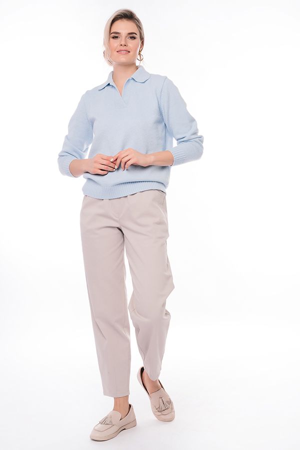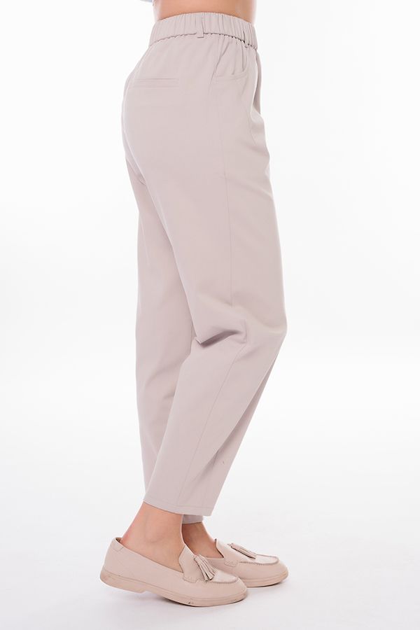 Молодежные брюки-бананы из ткани с большим содержанием хлопка . Детали: спереди имитация гульфика, боковые карманы с горизонтальным входом, сзади под вытачками листочки с имитацией кармана. На поясе шлевки. В поясе резина. По передней половинке , по линии низа брюк- две вертикальные вытачки.  Длина по внутреннему шву - 71 см. Ширина низа - 15,5см. *Числовые параметры соответствуют размеру 42. Размер модели на фото: 42. Параметры модели: 86-53-94. Рост модели на фото: 173 см.