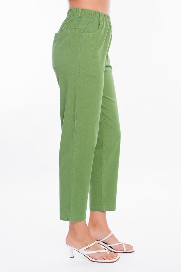 Молодежные брюки-бананы из легкой летней хлопковой ткани. Детали: спереди имитация гульфика, боковые карманы с горизонтальным входом, сзади под кокеткой полноценные прорезные карманы. На поясе шлевки. В поясе резина. . Длина по внутреннему шву - 69 см. Ширина низа - 16 см. *Числовые параметры соответствуют размеру 44. азмер модели на фото: 44. Параметры модели: 86-63-94. Рост модели на фото: 173 см.