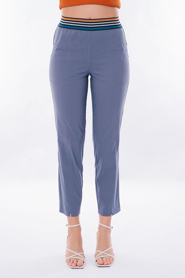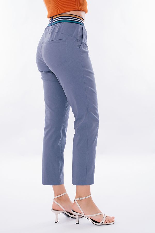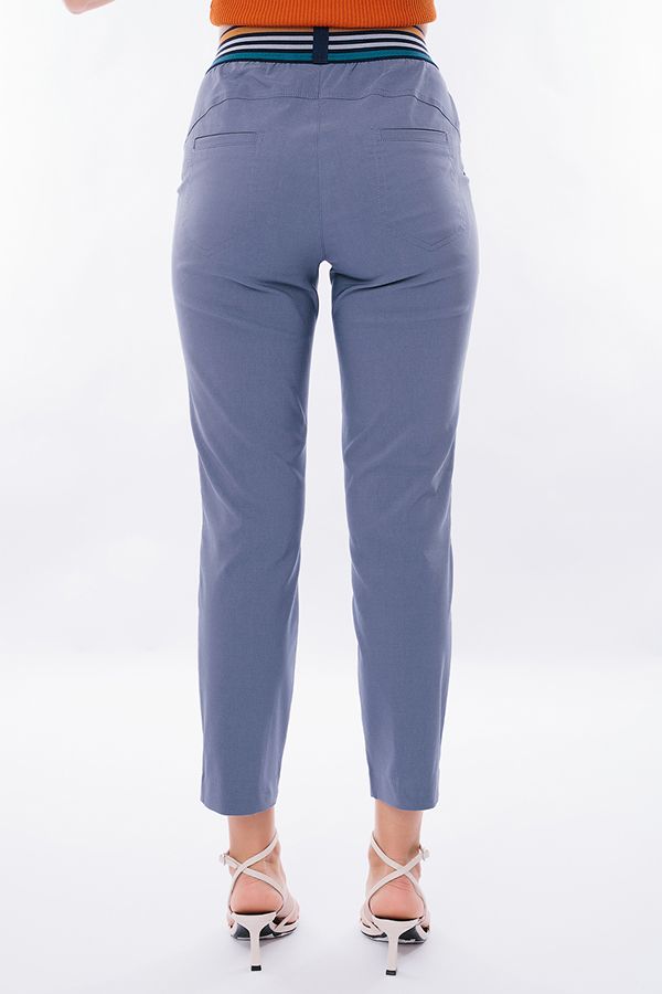 Модель брюк в спортивном стиле без застежки. Пояс выполнен из фирменной резины. Детали: спереди вертикальный рельеф, заканчивающийся небольшим разрезом, фигурно отстроченные боковые карманы. Сзади, под фигурной кокеткой, накладные карманы с отсрочкой. *Числовые параметры соответствуют размеру 42. Длина по внутреннему шву - 68 см. Ширина низа - 17 см. Размер модели на фото: 44. Параметры модели: 86-63-94. Рост модели на фото: 173 см.