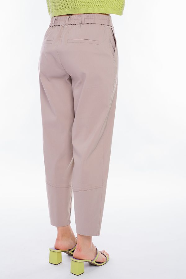 Модель брюк в молодежном стиле. Детали: спереди застежка на молнию и фирменную пуговицу, боковые карманы с оригинальной отстрочкой двойным швом, сзади имитация карманов. В пояс , по спинке, вставлена резина, шлевки на поясе. По низу изделия широкая манжета. Длина по внутреннему шву - 68,5 см. Ширина низа - 15 см. *Числовые параметры соответствуют размеру 42. Размер модели на фото: 44. Параметры модели: 86-63-94. Рост модели на фото: 173 см.
