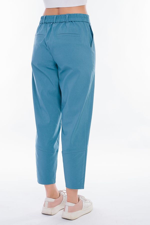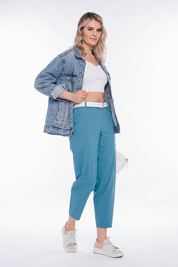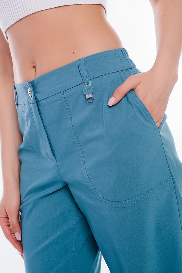 Модель брюк в молодежном стиле . Детали: спереди застежка на молнию и фирменную пуговицу, боковые карманы с оригинальной отстрочкой двойным швом, сзади имитация карманов. В пояс , по спинке, вставлена резина, шлевки на поясе. По низу изделия широкая манжета. Длина по внутреннему шву - 68,5 см. Ширина низа - 15 см. *Числовые параметры соответствуют размеру 42. Размер модели на фото: 44. Параметры модели: 86-63-94. Рост модели на фото: 173 см.