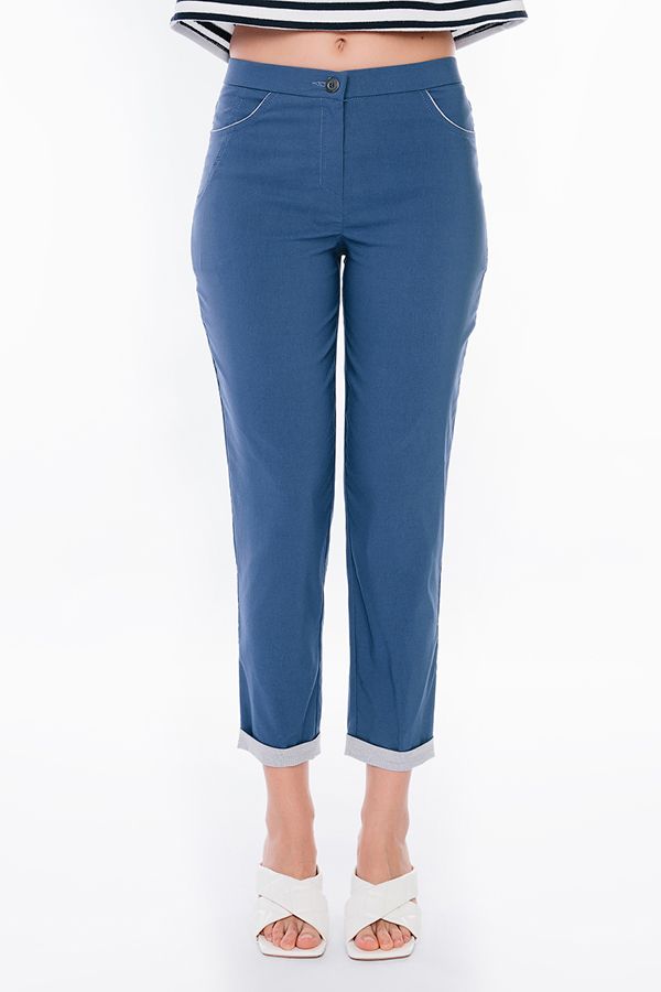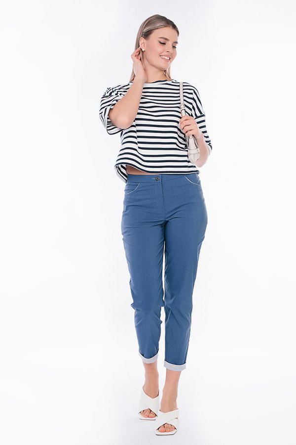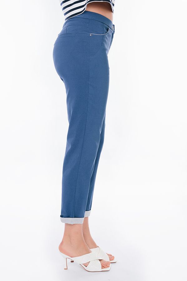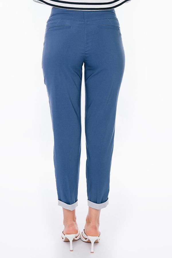 Современная модель брюк в стиле "Casual". Детали: спереди застежка на молнию и пуговицу, боковые карманы с горизонтальным входом и контрастной отделкой. Сзади под кокеткой листочки с имитацией карманов. В поясе резина. По низу брюк функциональный отворот с контрасной отделкой. Длина по внутреннему шву - 69 см. Ширина низа - 14 см. *Числовые параметры соответствуют размеру 44. Размер модели на фото: 44. Параметры модели: 86-63-94. Рост модели на фото: 173 см.