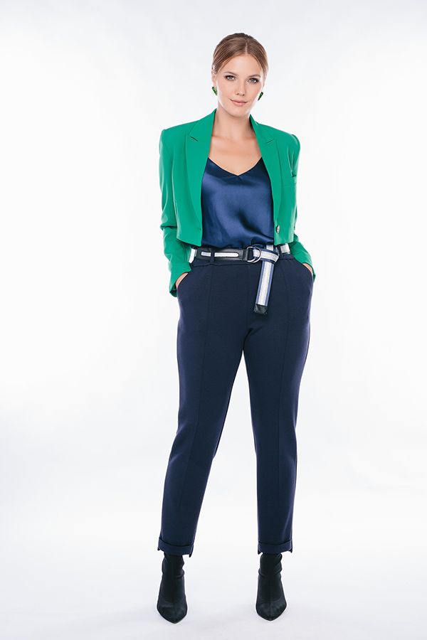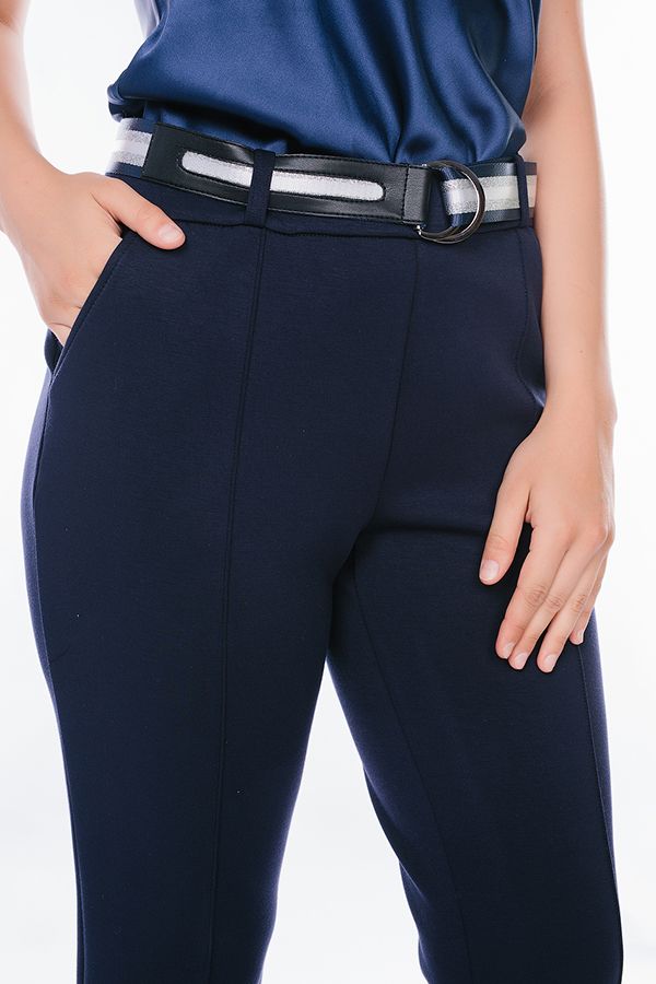Комфортная модель брюк из современной ткани НЕОПРЕН. Брюки без замка, с застроченными стрелками по передней половинке (стрелка заканчивается за 15 см. до низа изделия). По бокам полноценные карманы, сзади имитация карманов оформленная листочкой. По низу изделия ступенька с отворотом по передней половинке. В поясе резина, шлевки . В комплекте декоративный ремешок. Длина по внутреннему шву передней половинки - 68,5 см., задней- 70 см. Ширина низа - 17 см. *Числовые параметры соответствуют размеру 44. Размер модели на фото: 44. Параметры модели: 89-62-97. Рост модели на фото: 175 см.