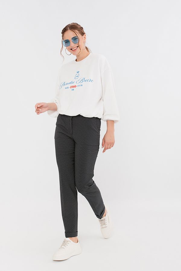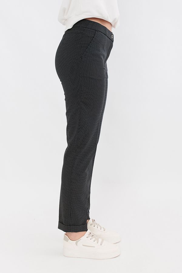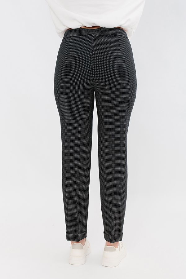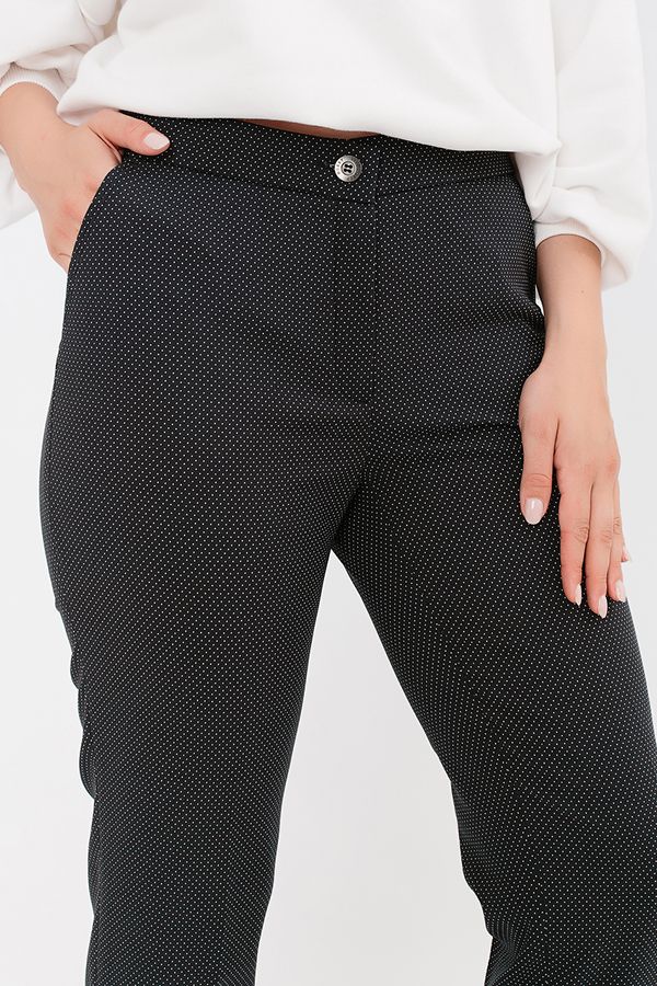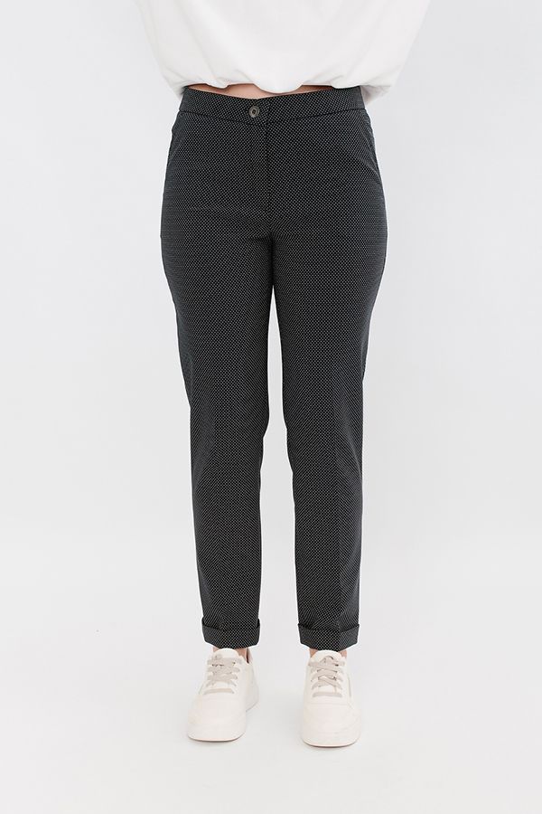 Брюки в городском стиле. Детали: спереди застежка на молнии и пуговицу, полноценные боковые карманы. Сзади вытачки. По линии низа отворот, который можно использовать для изменения длины брюк. Длина по внутреннему шву - 72 см. Ширина по линии низа - 16 см *Числовые параметры соответствуют размеру 42. Размер модели на фото: 46. Параметры модели: 94-65-100. Рост модели на фото: 175 см.