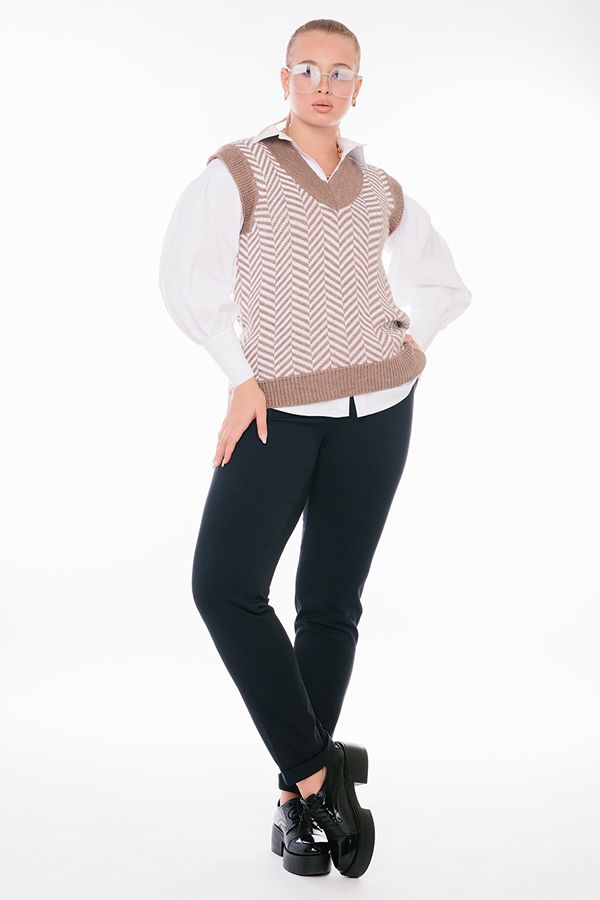 Модель в классическом стиле со стрелками из плотной ткани габардин. Детали: застежка на молнию и пуговицу, карманы с отрезным бочком. Сзади в поясе резина. По низу брюк отвороты. Длина по внутреннему шву - 79 см. Ширина низа - 16,4 см. Числовые параметры соответствуют размеру 44. Размер модели на фото: 46. Параметры модели: 90-68-99. Рост модели на фото: 175 см.