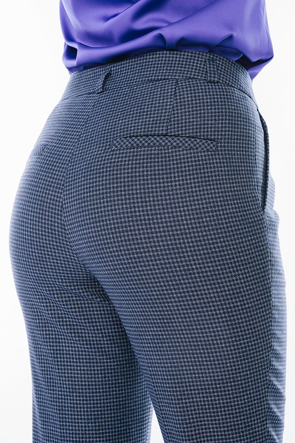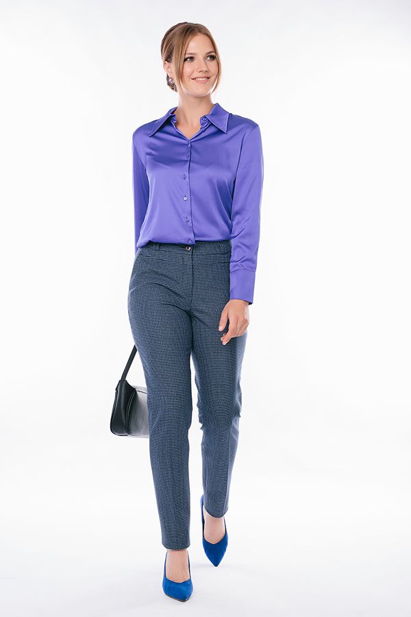 Модель в классическом стиле со стрелками, прямые от колена. Детали спереди: застежка на молнию и пуговицу, двойные шлевки на поясе, карманы с отрезным бочком, кокетка. Детали сзади: вытачки, листочки с имитацией кармана, шлевки на поясе. Длина по внутреннему шву - 82 см. Ширина низа - 21 см. *Числовые параметры соответствуют размеру 44. Размер модели на фото: 44. Параметры модели: 89-62-97. Рост модели на фото: 175 см.