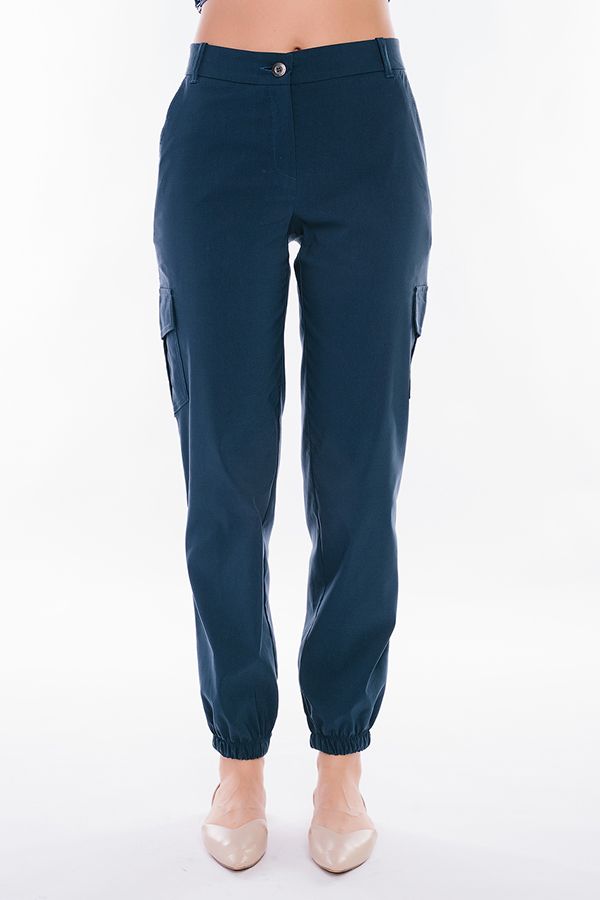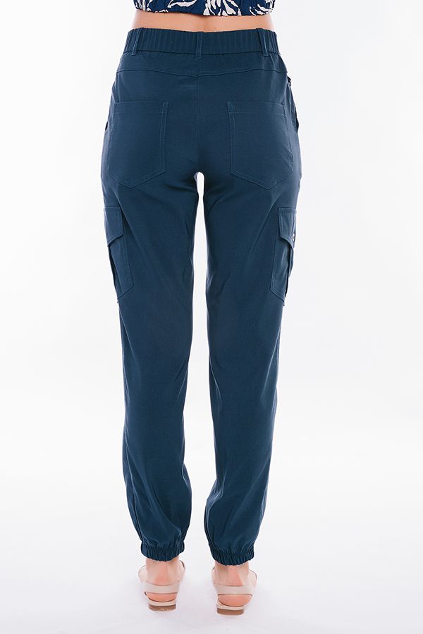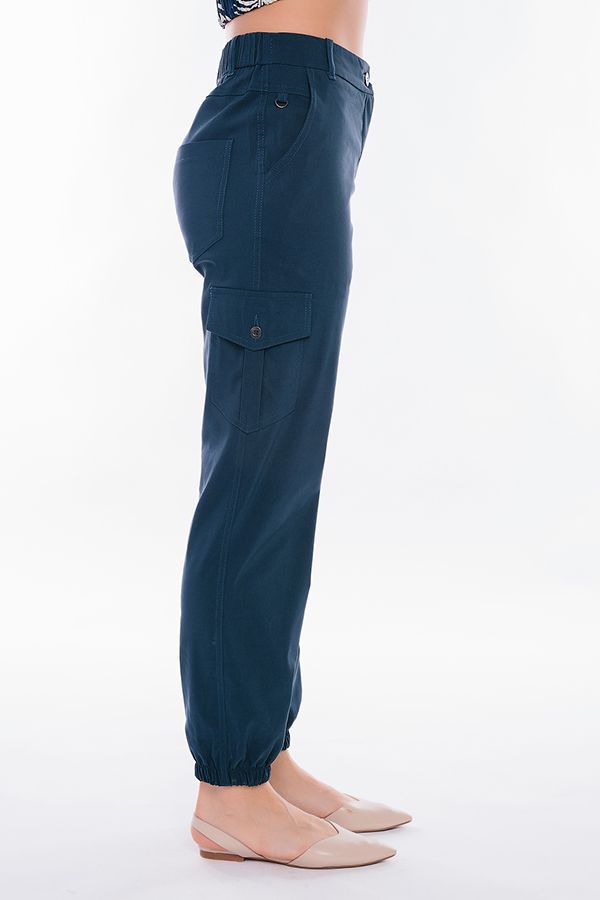 Молодежные брюки в стиле "карго". Детали: спереди застежка на молнию и пуговицу, боковые карманы. Сзади кокетка, накладные карманы. В поясе, задней половинке резина, шлевки. По бокам , в районе середины бедра, накладные карманы с клапаном на пуговице. Низ брюк на резине. Длина по внутреннему шву - 77 см. Ширина низа - 14 см. *Числовые параметры соответствуют размеру 42. Размер модели на фото: 44. Параметры модели: 86-63-94. Рост модели 173 см.