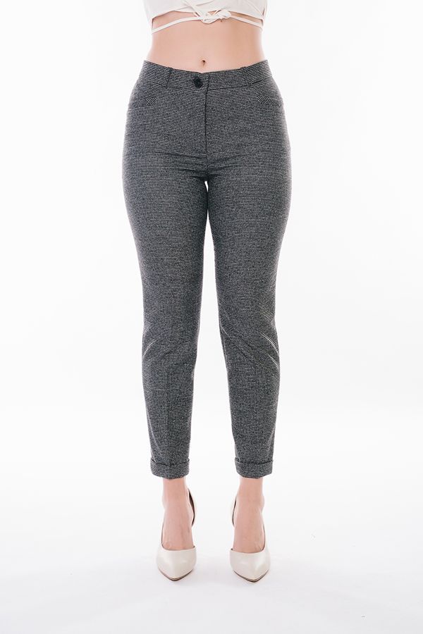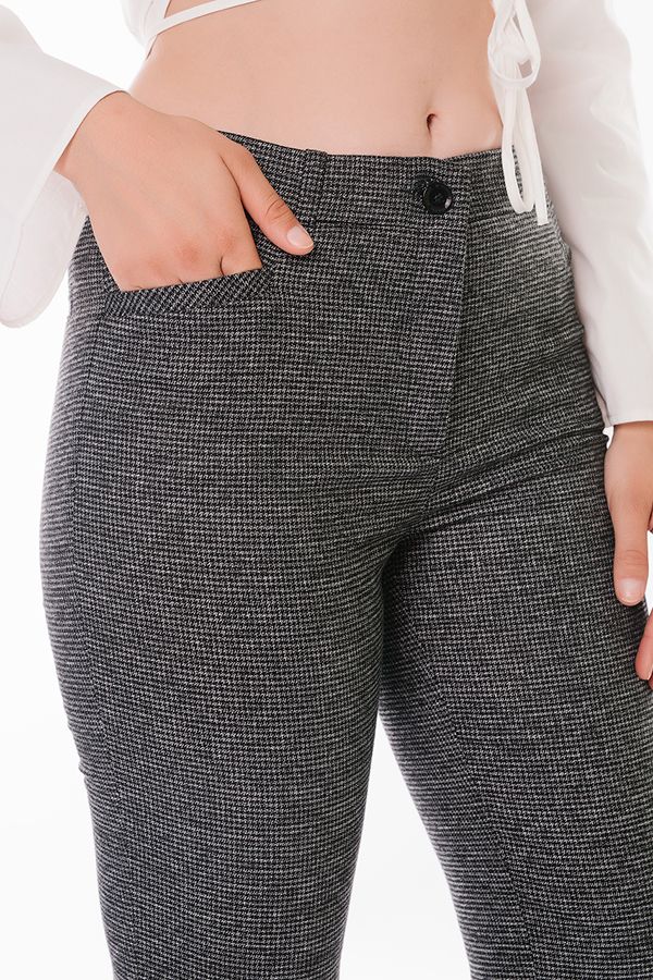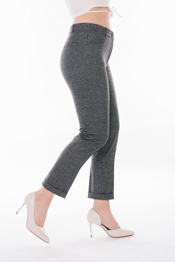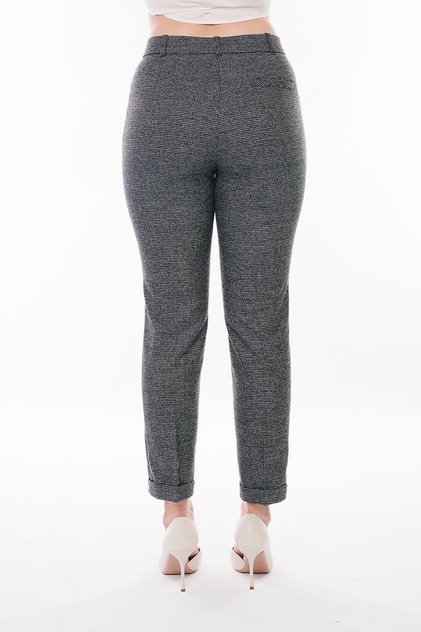 Модель в классическом стиле со стрелками. Детали: спереди застежка на молнию и пуговицу, боковые карманы с горизонтальным входом, сзади под вытачками справа листочка с имитацией кармана. В пояс вставлена эластичная лента. По линии низа отворот, который можно использовать для изменения длины брюк. Длина по внутреннему шву - 71 см. Ширина низа - 17 см. *Числовые параметры соответствуют размеру 42. Размер модели на фото: 44. Параметры модели: 89-62-97. Рост модели на фото: 175 см.