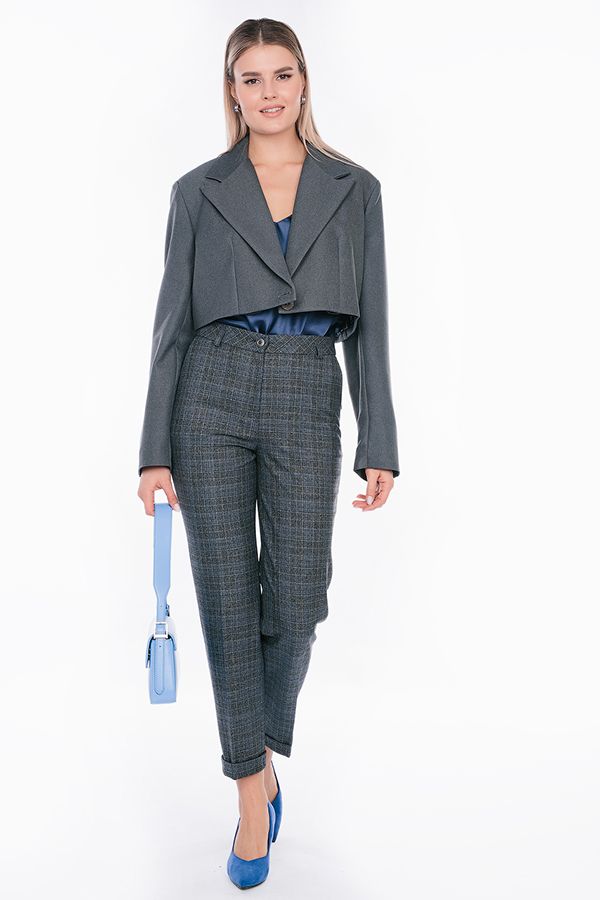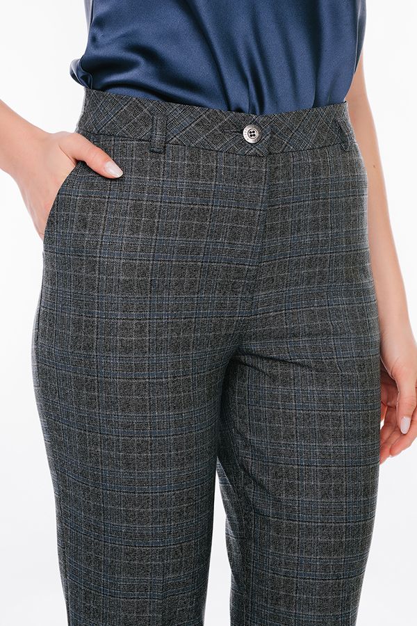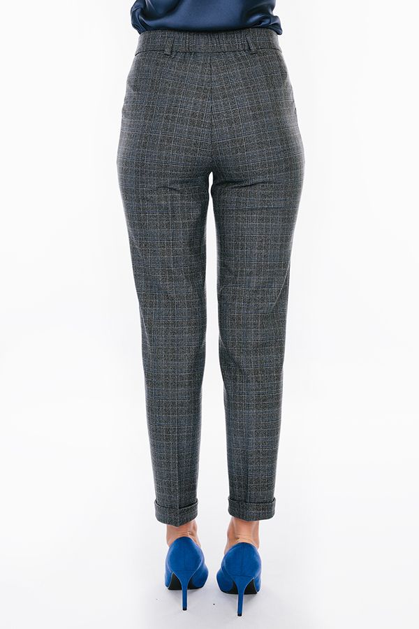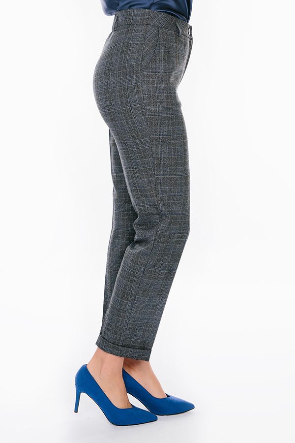 Брюки в городском стиле. Силуэт зауженный книзу. Детали: спереди застежка на молнию и пуговицу, полноценные боковые карманы с отрезным бочком, сзади по поясу резина. На поясе шлевки. По линии низа отворот. Модель брюк подходит женщинам всех возрастов. Длина по внутреннему шву - 71 см. Ширина низа - 17 см. Числовые параметры соответствуют размеру 44. Размер модели на фото: 44. Параметры модели: 86-63-94. Рост модели на фото: 173 см.