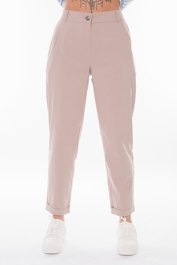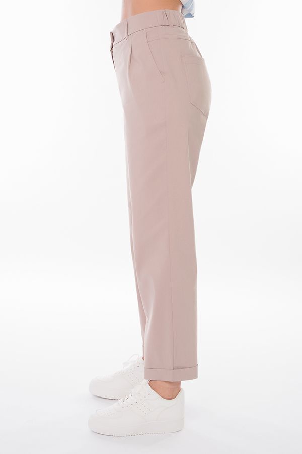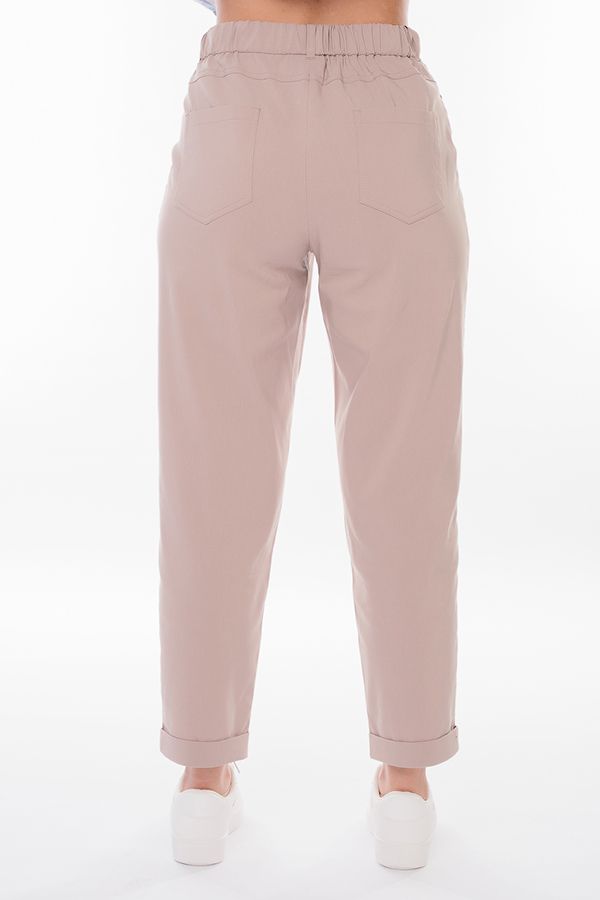 Брюки в городском стиле. Силуэт зауженный книзу. Детали: спереди застежка на молнию и пуговицу, небольшие защипы по линии пояса, полноценные боковые карманы с отрезным бочком, сзади по поясу резина. На поясе шлевки. По линии низа отвороты. Модель брюк подходит женщинам всех возрастов. Длина по внутреннему шву :71 см. Ширина низа - 18 см. *Числовые параметры соответствуют размеру 42. Размер модели на фото: 46. Параметры модели: 86-64-100. Рост модели на фото: 174 м.