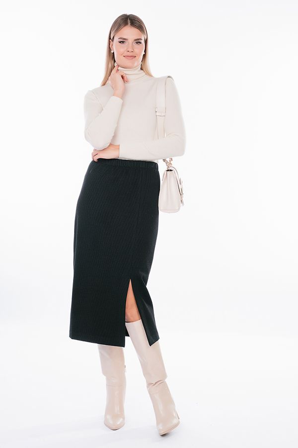 Элегантная юбка из трикотажного вельвета, на подкладе. Длина миди. По передней половинке, слева разрез. В поясе резина. Длина изделия 77 см. Размер модели на фото: 42.Параметры модели: 86-53-94. Рост модели на фото: 173 см.