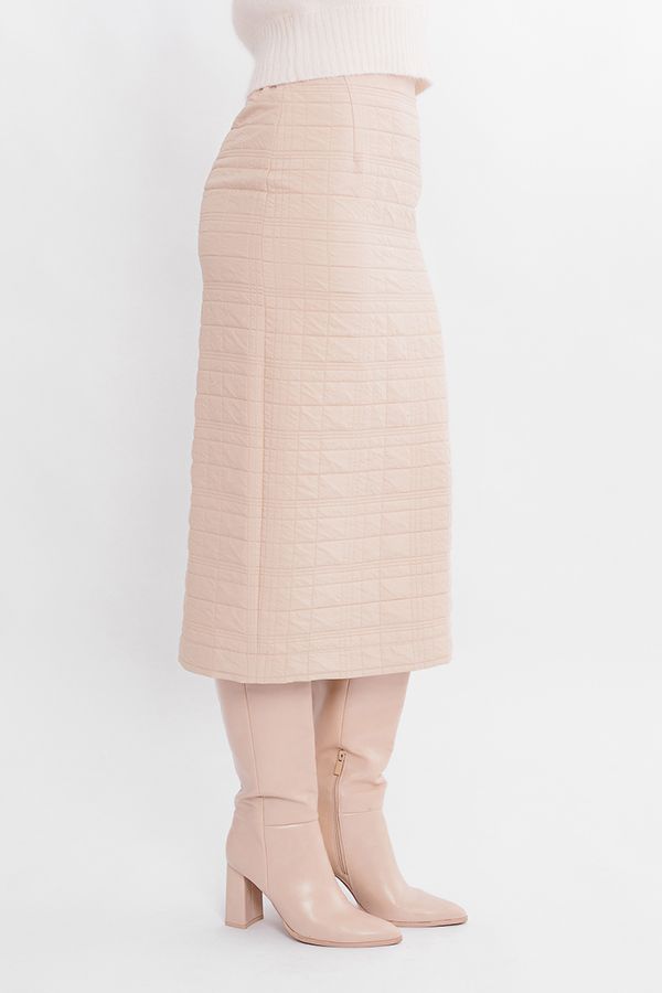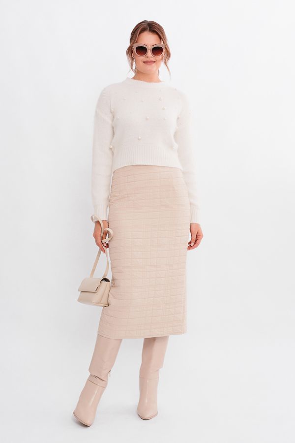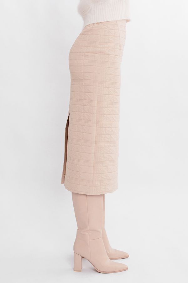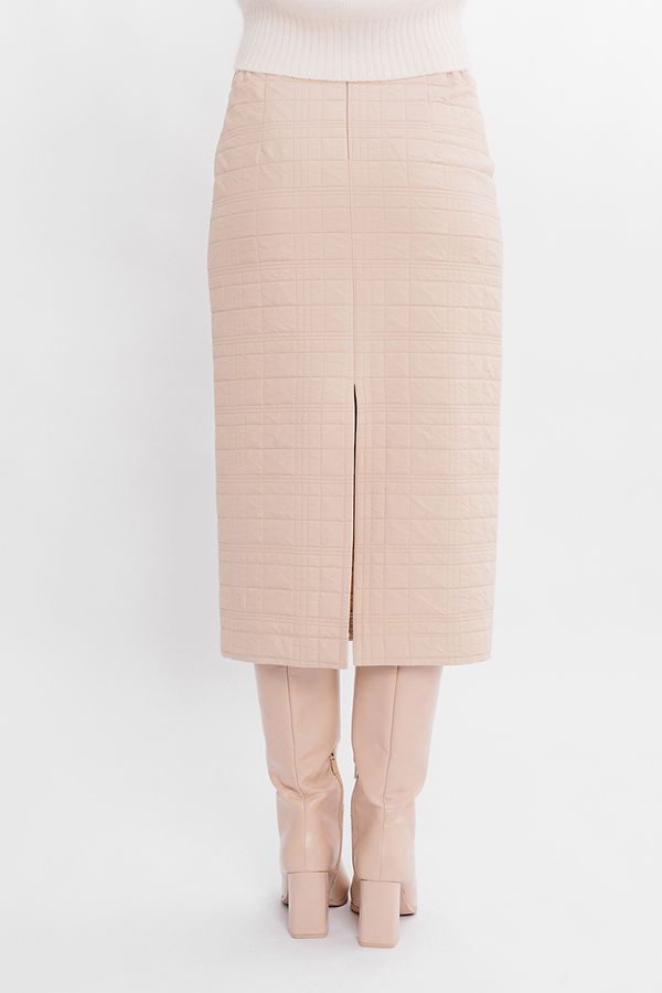 Классическая модель юбки длиной миди. Юбка на подкладке, без пояса, по переду вытачки. По задней половинке вытачки, застежка на потайную молнию в среднем шве, щлица. Между боковым швом и задней вытачкой, по линии талии резина на сборке. Длина изделия 88 см. Размер модели на фото: 44. Параметры модели: 86-63-94. Рост модели на фото: 173 см.