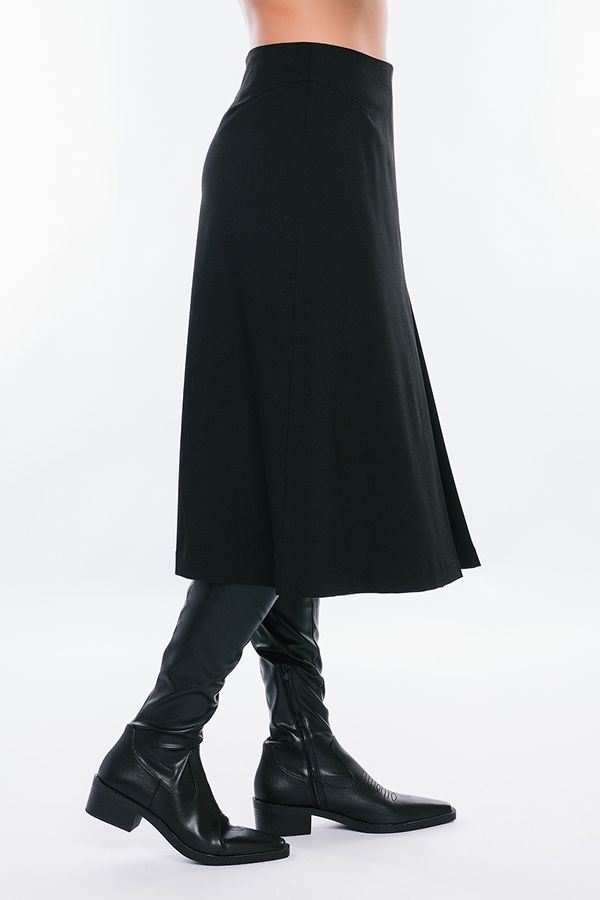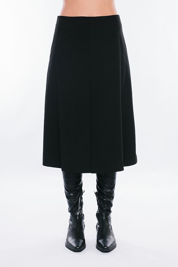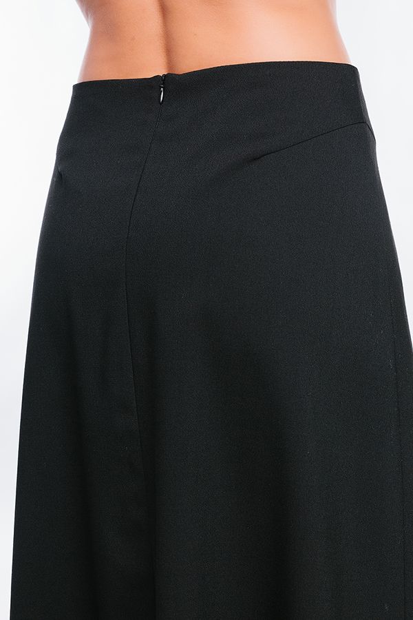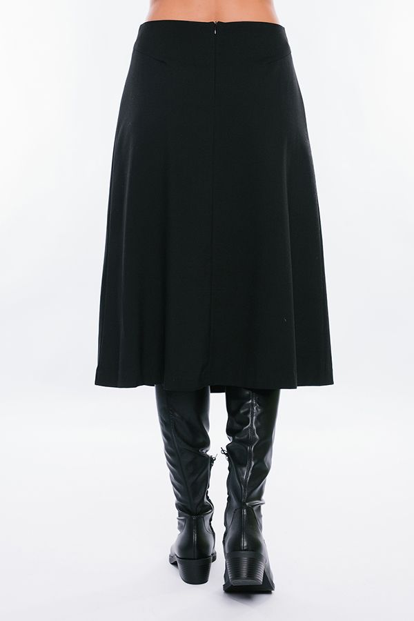 Элегантная черная юбка А-силуэта станет прекрасным дополнением Вашего повседневного гардероба. Детали: в среднем переднем шве встречная складка, сзади в среднем шве потайная молния. Оригинальное исполнение передних и задних выточек в боковых швах. Изделие на подкладке. Длина изделия 80 см. Размер модели на фото: 44. Параметры модели: 86-63-94. Рост модели на фото: 173 см.