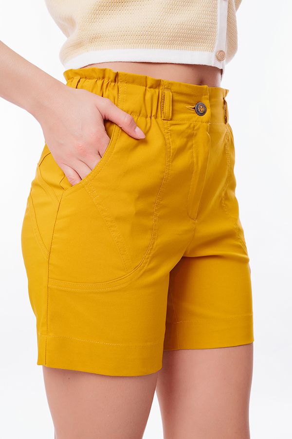 Молодежные короткие шорты. Детали: спереди застежка на молнию и пуговицу, боковые карманы с отделкой двойной строчкой, сзади двойная фигурная кокетка. Шлевки на поясе. В поясе резина. Длина по внутреннему шву - 15 см. Ширина низа - 26,5 см. *Числовые параметры соответствуют размеру 42. Размер модели на фото: 44. Параметры модели: 86-63-94. Рост модели на фото: 173 см.