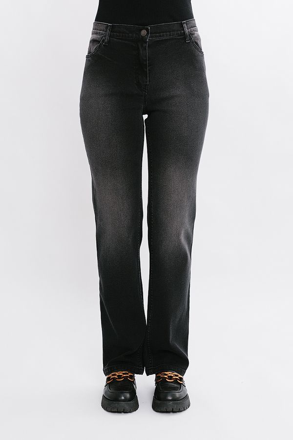 Женские классические джинсы черного цвета. Детали: спереди застежка на молнию и болт, Боковые карманы закреплены хольнитенами, сзади, под кокеткой накладные карманы, на поясе шлевки. Длина по внутреннему шву - 80 см. Ширина низа - 20 см. *Числовые параметры соответствуют размеру 46. Размер модели на фото: 44. Параметры модели: 86-63-94. Рост модели на фото: 173 см.